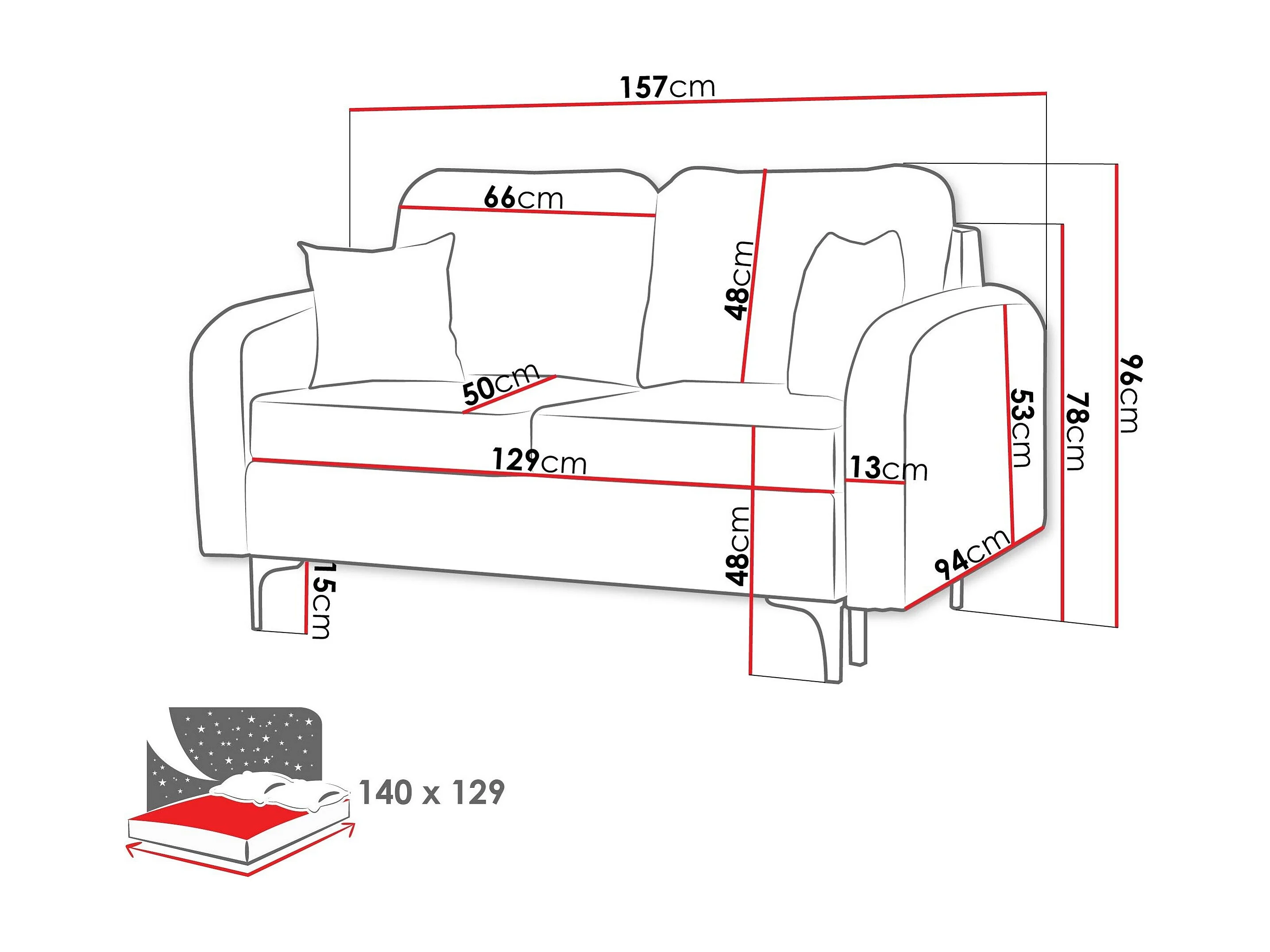 Sofá cama Torlua 101, Almacenaje, 96x157x94cm