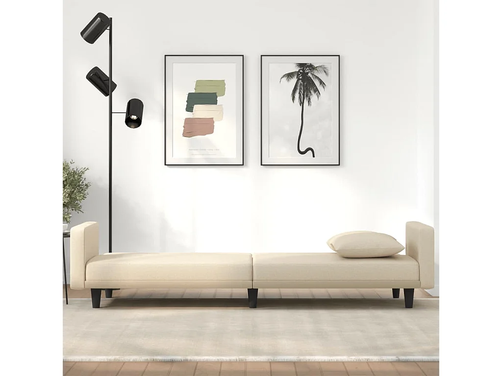 Sofá cama con cojines tela color crema