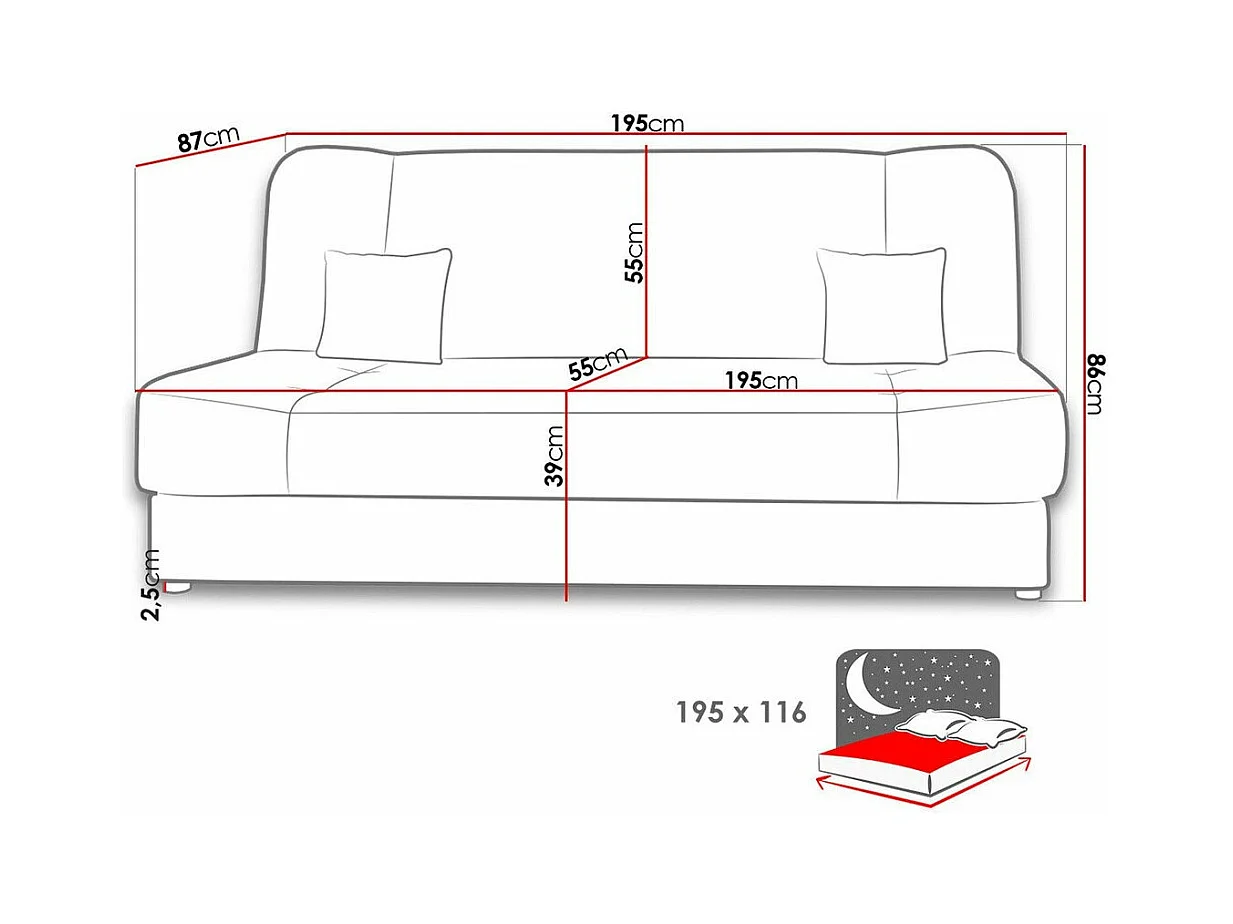 Sofá-cama Comfivo 124, Almacenaje, 86x195x87cm