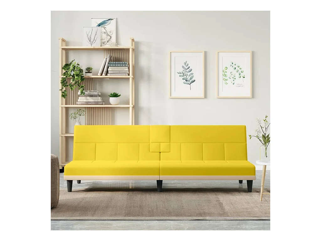 Sofá cama con portavasos terciopelo amarillo PWFG75290