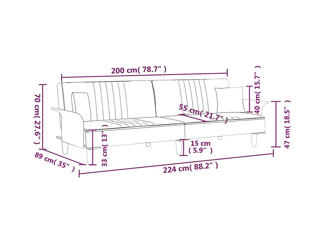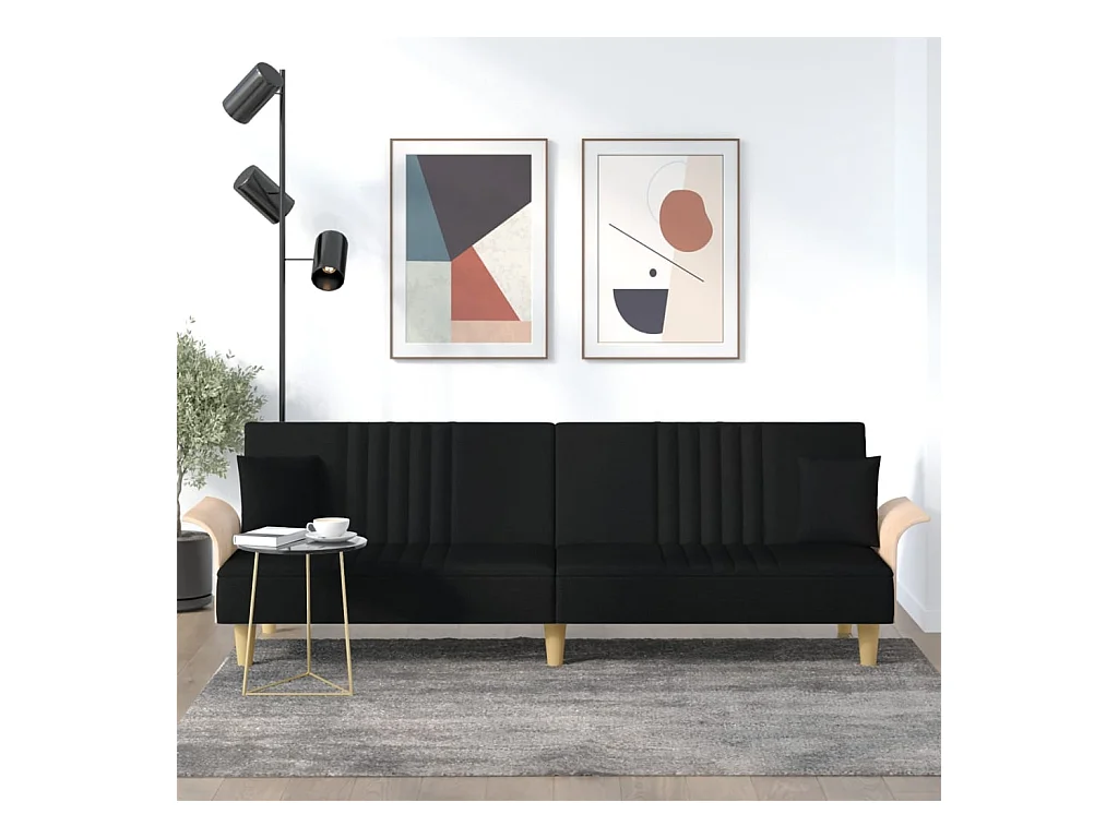 Sofá cama con reposabrazos tela negro