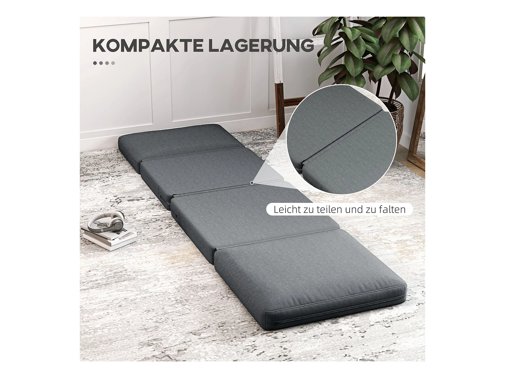 Sofá cama plegable 4 en 1 de lino Bodensofa con cojín gris oscuro, 150 kg