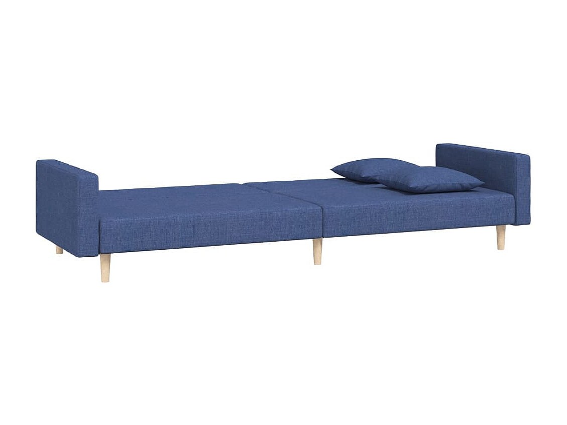 Sofá cama de 2 plazas con dos almohadas de tela azul