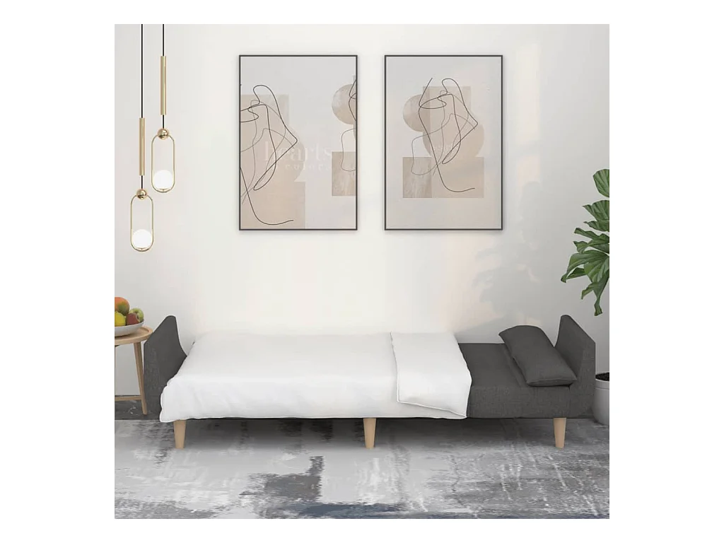 Sofá cama de 2 plazas con dos almohadas en tela gris oscuro