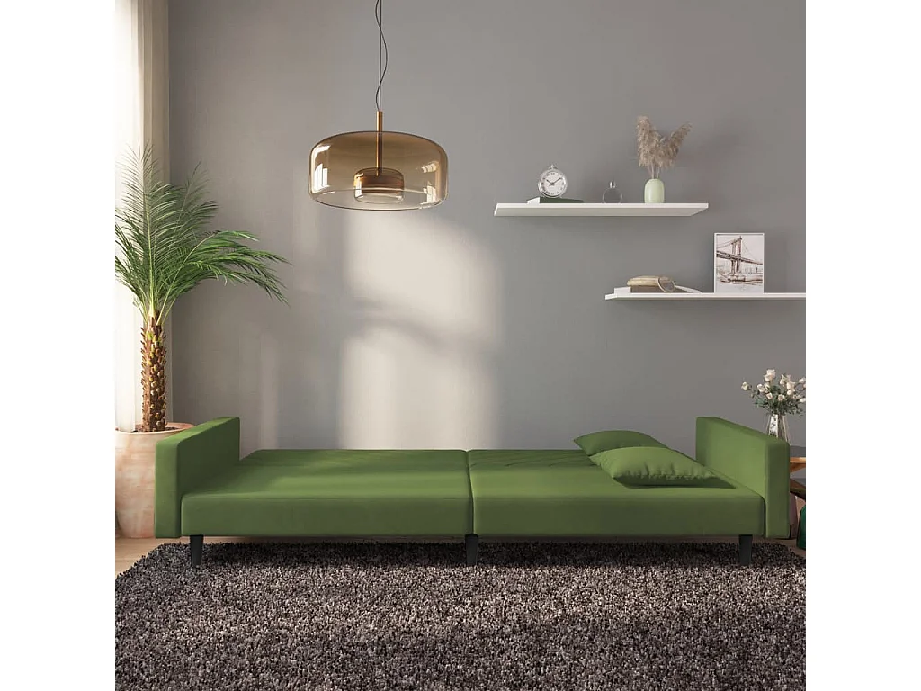 Sofá cama de 2 plazas con dos almohadas terciopelo verde oscuro PWFG17126