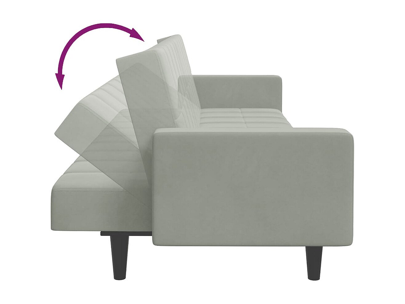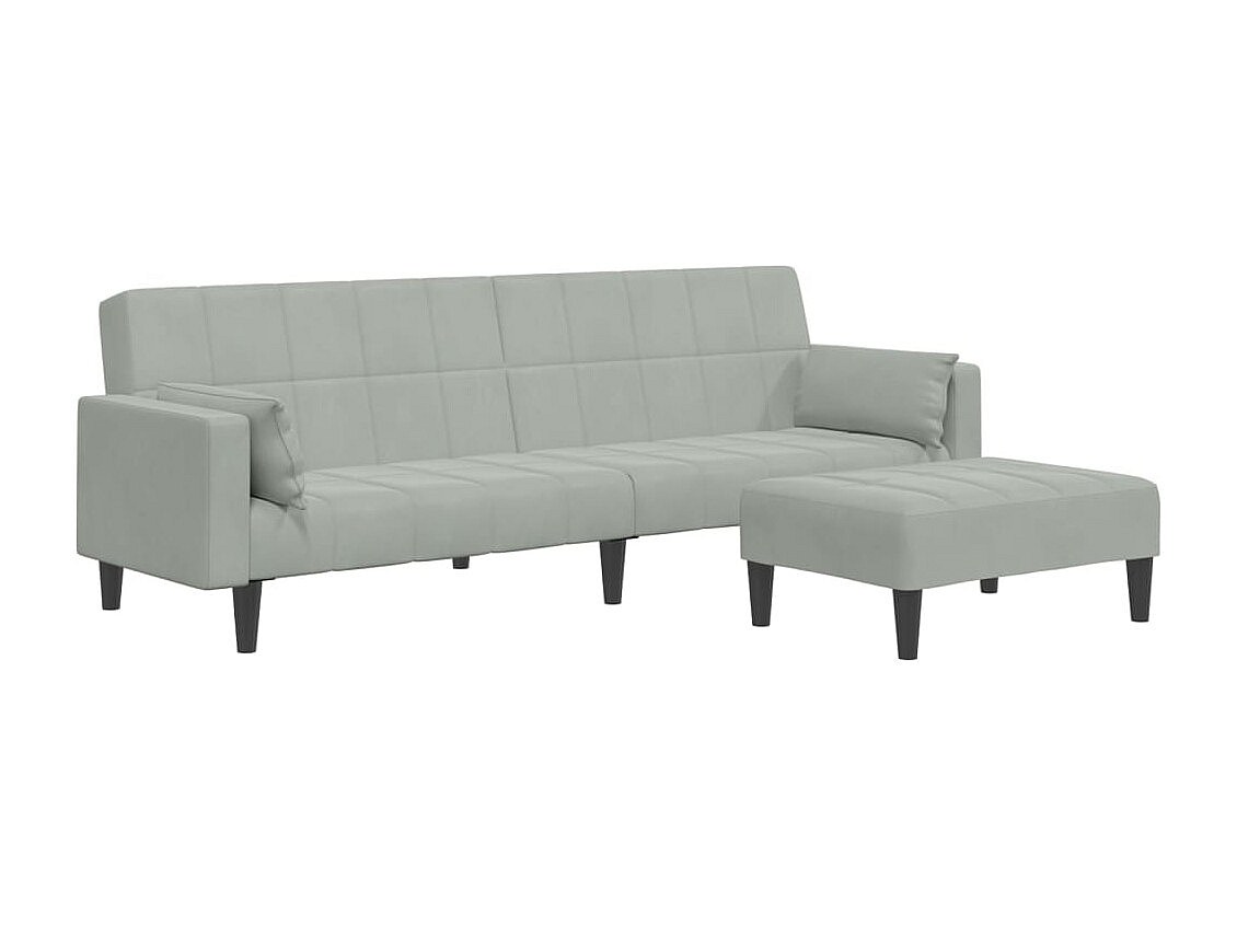 Sofá cama de 2 plazas con reposapiés de terciopelo gris claro