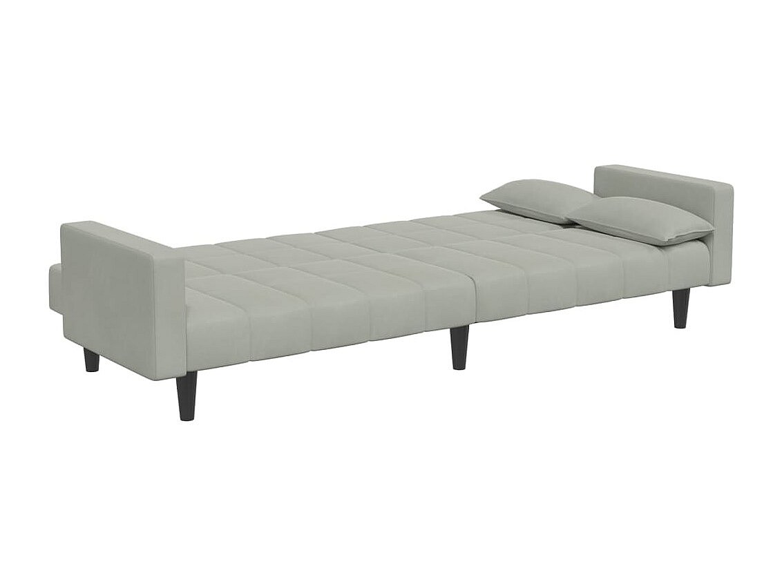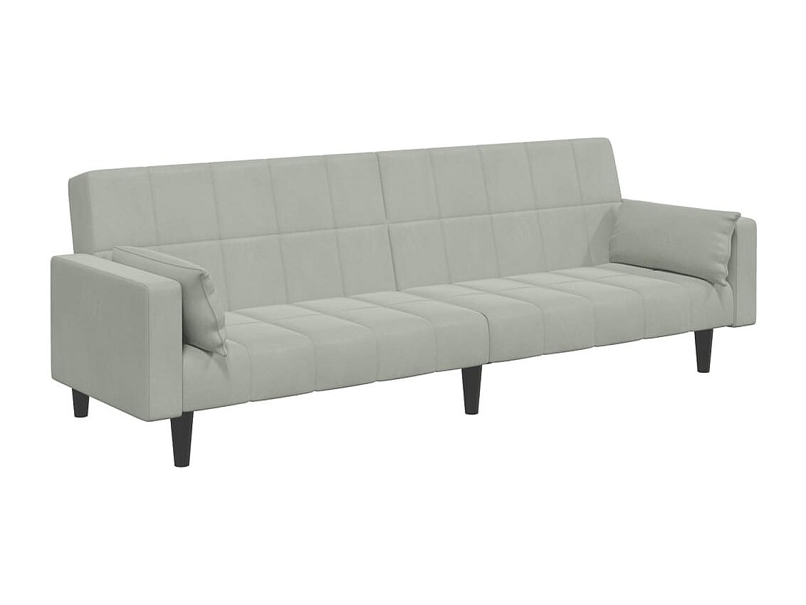 Sofá cama con cojines de terciopelo gris claro