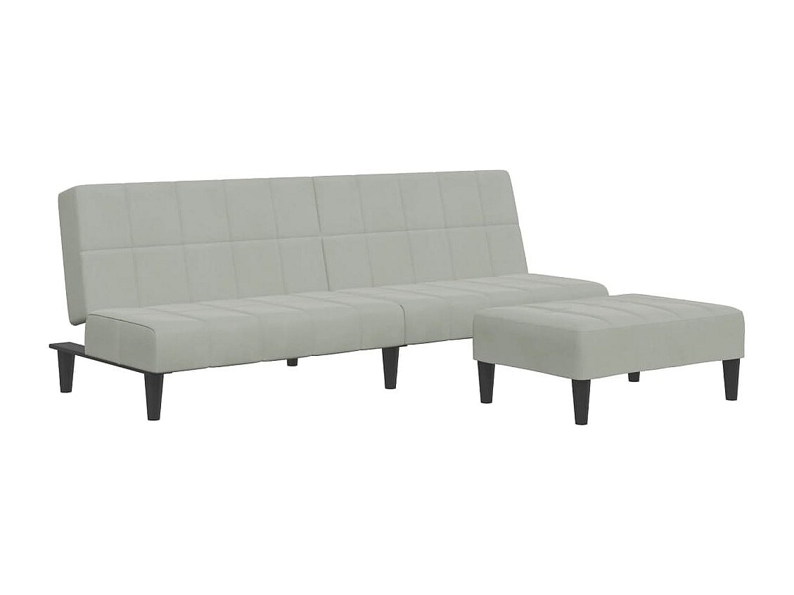 Sofá cama de 2 plazas con reposapiés de terciopelo gris claro
