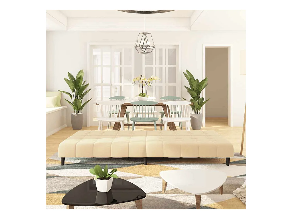 Sofá cama de 2 plazas con dos almohadas de terciopelo crema
