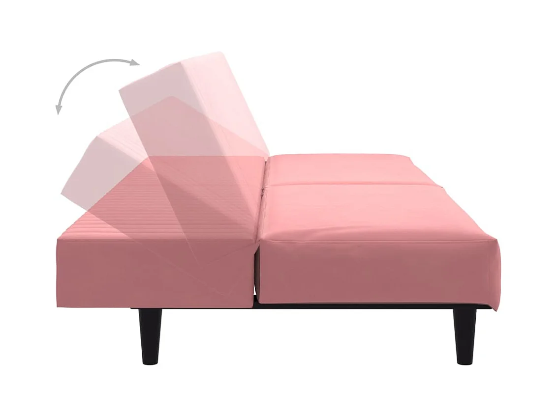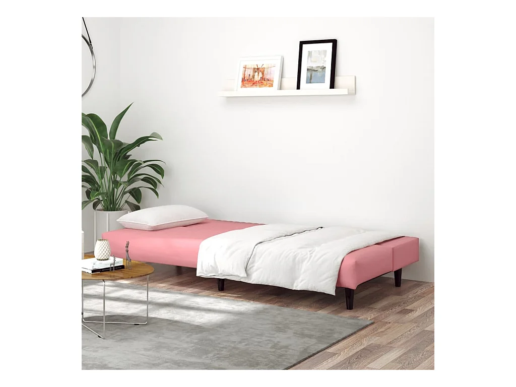 Sofá cama de 2 plazas con dos almohadas terciopelo rosa