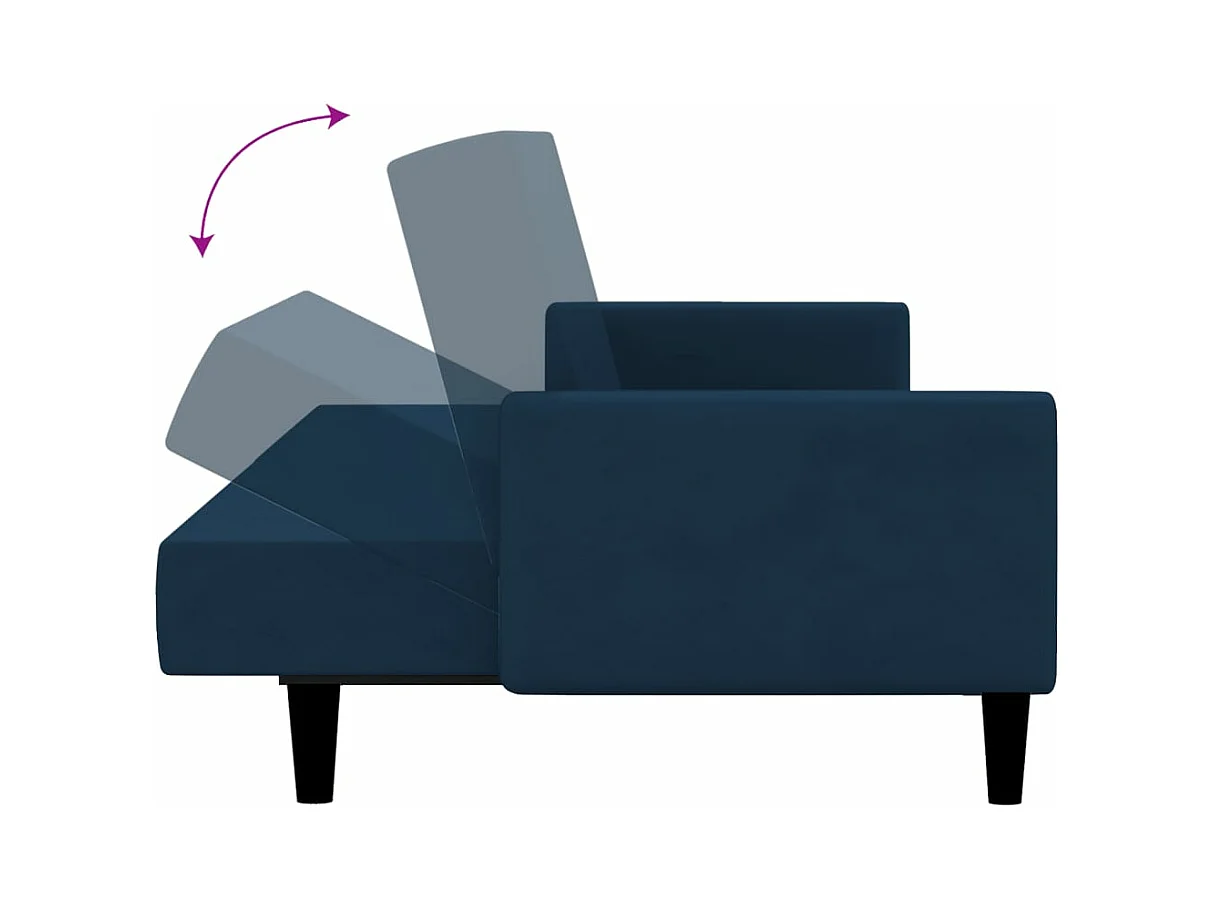 Sofá cama de 2 plazas con dos almohadas terciopelo azul