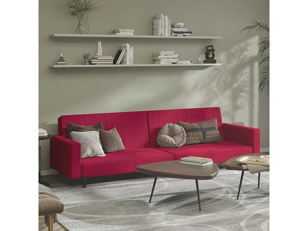 Sofá cama de 2 plazas terciopelo color vino tinto