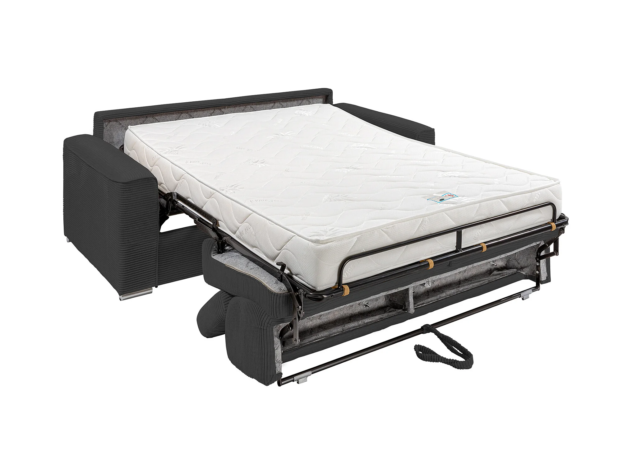 Sofá cama de 3 plazas con apertura italiana de pana gris - Somier de láminas de 140 cm - Colchón de 18 cm - VIZIR