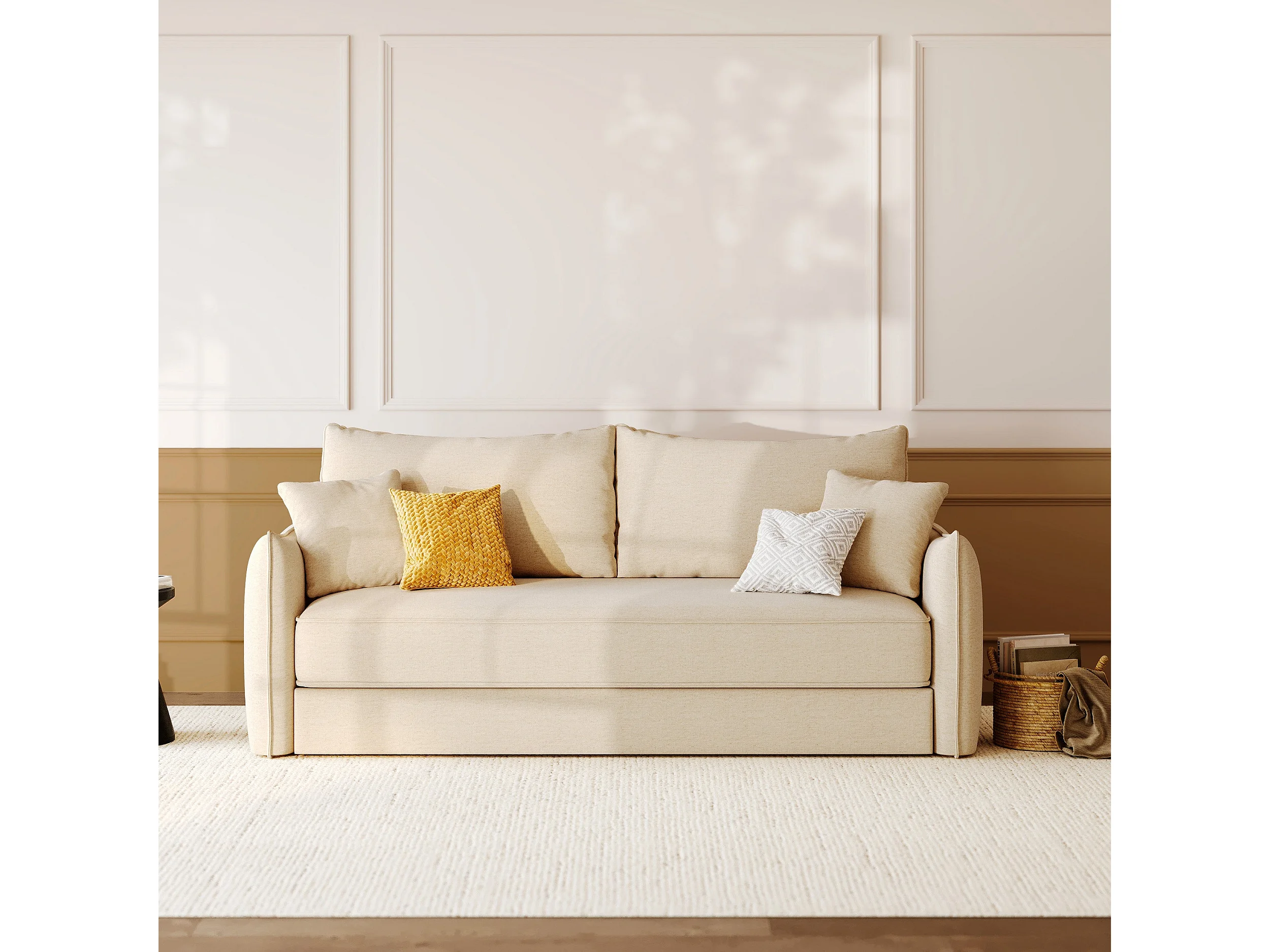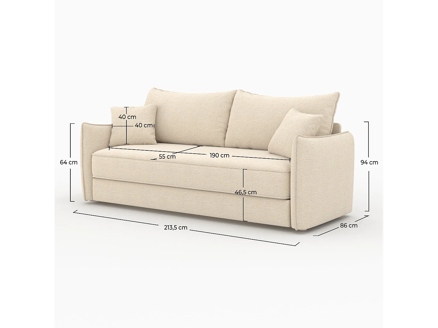 Sofá cama de 3 plazas en tela efecto lino blanco roto - Céleste