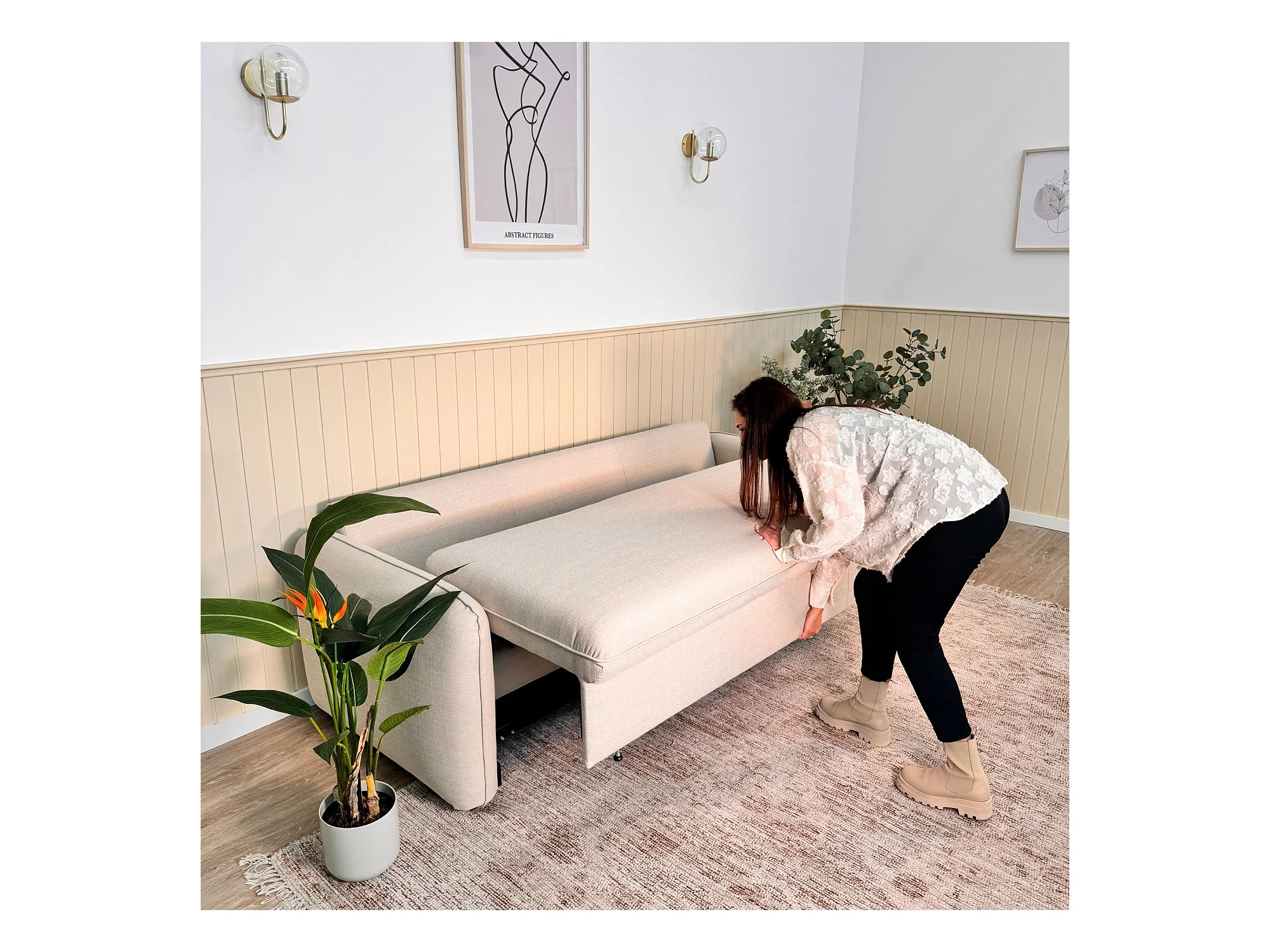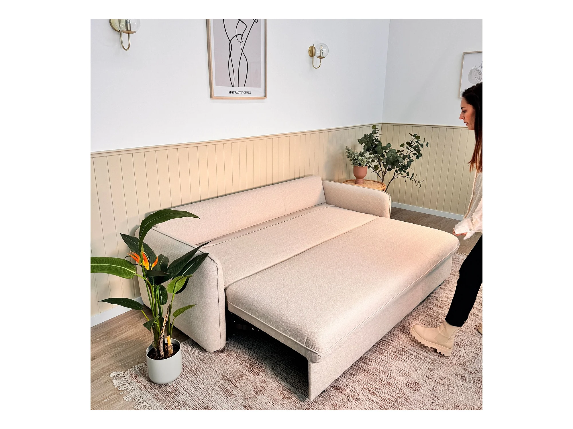 Sofá cama de 3 plazas - Sistema EasyBed poliéster beige