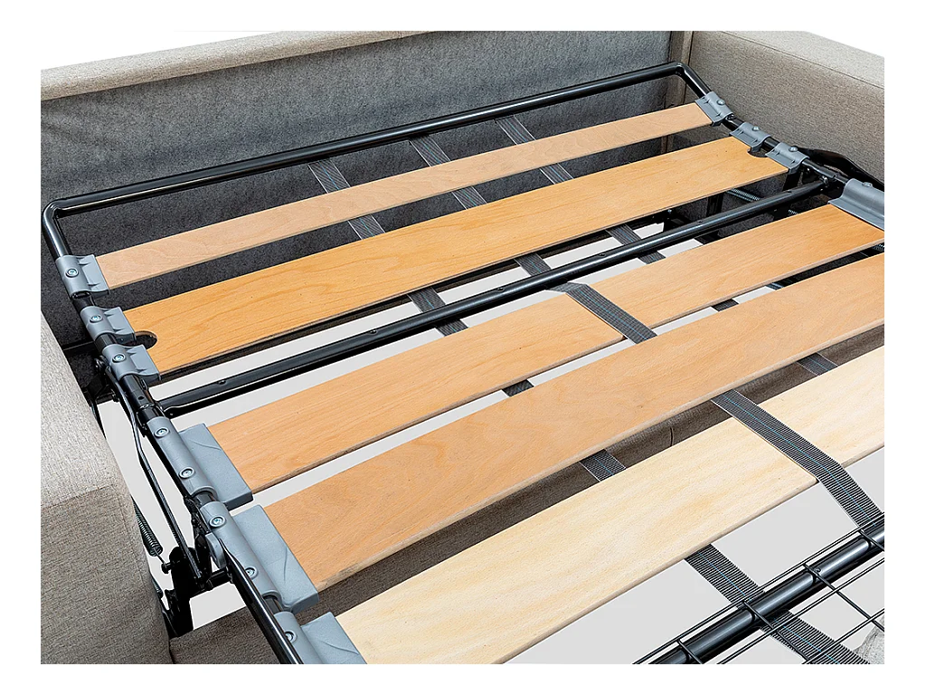 Sofá cama de 4 plazas de tela de apertura rápida VIZIR - Marrón - Somier de láminas de 160 cm - Colchón de 16 cm con memoria de forma