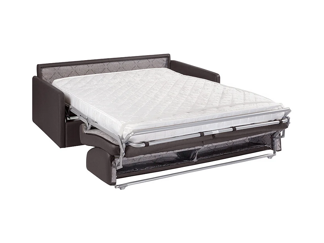 Sofá cama de 4 plazas tipo italiano de piel sintética CALIFE - Gris - Somier de láminas de 160 cm - Colchón de 14 cm