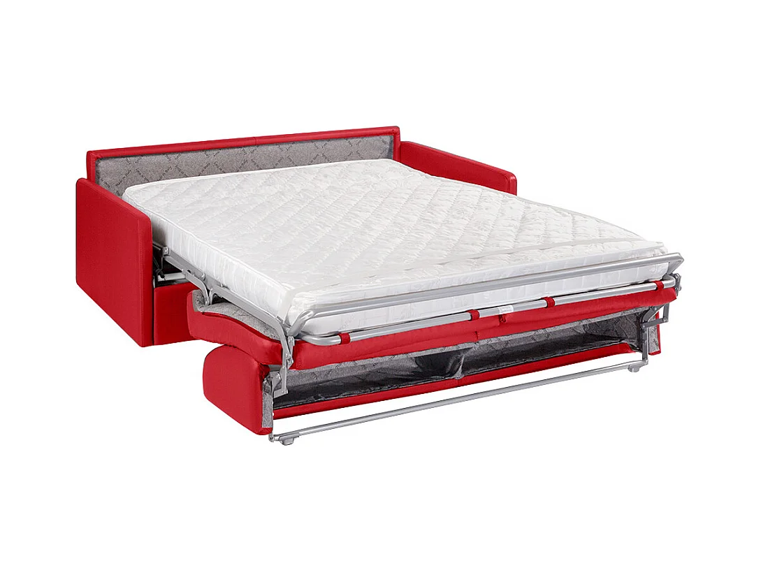 Sofá cama de 4 plazas tipo italiano de piel sintética CALIFE - Rojo - Somier de láminas de 160 cm - Colchón de 14 cm
