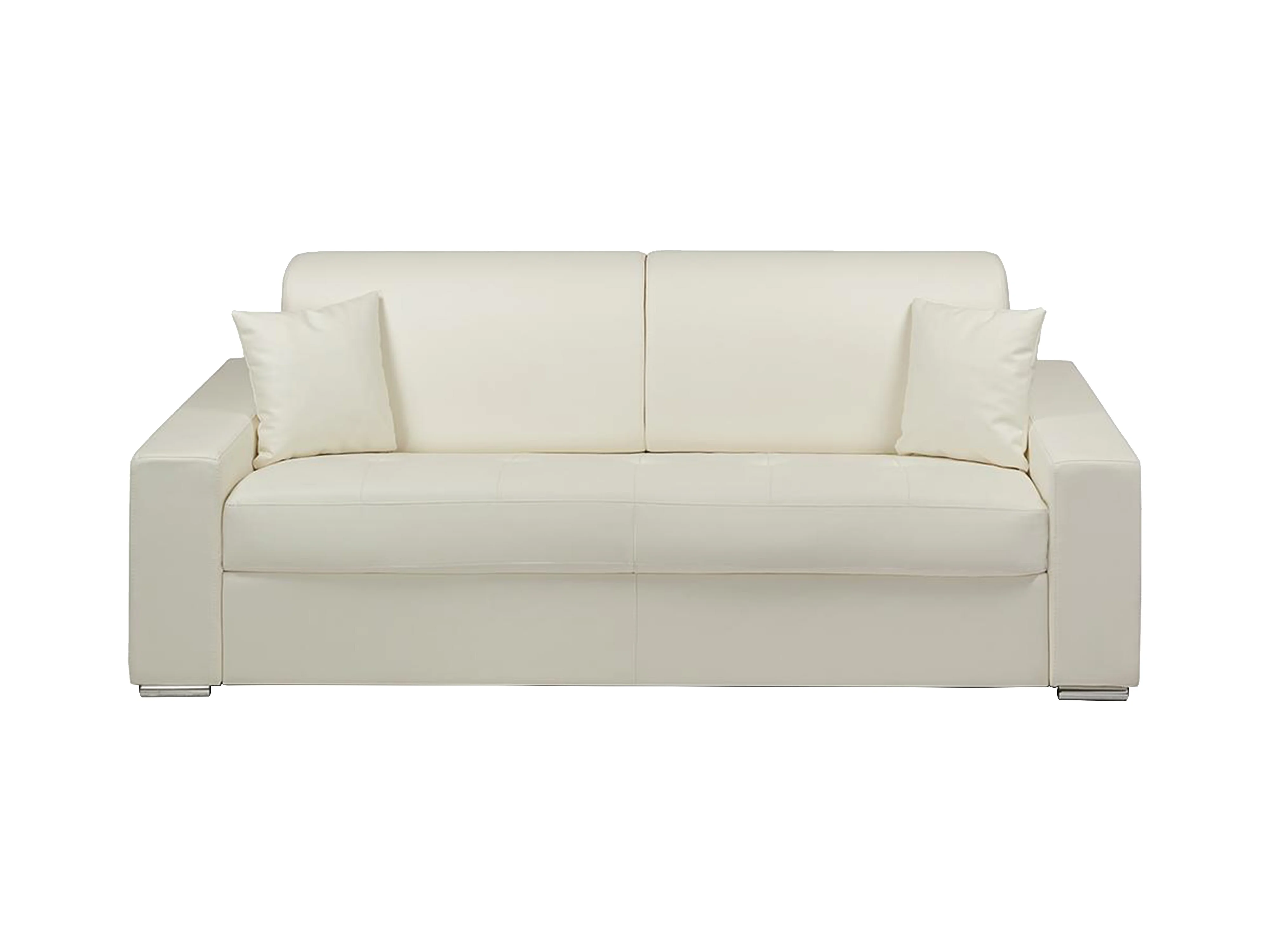 Sofá cama de 4 plazas tipo italiano de piel sintética EMIR - Blanco - Somier de láminas de 160 cm - Colchón de 18 cm