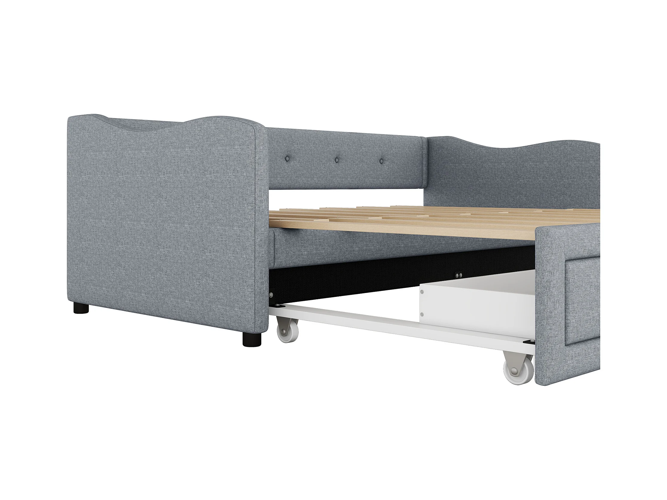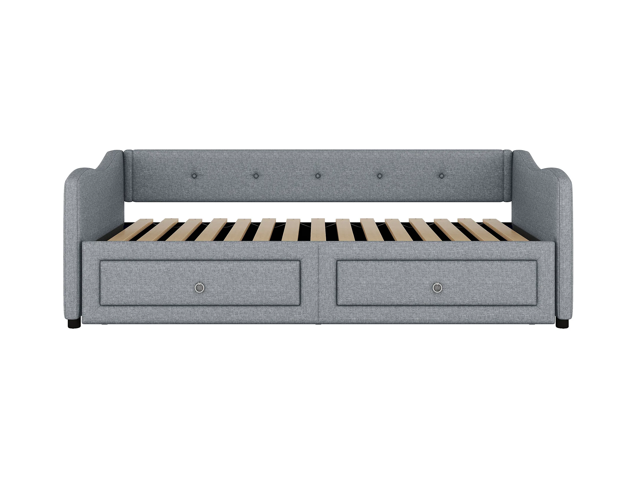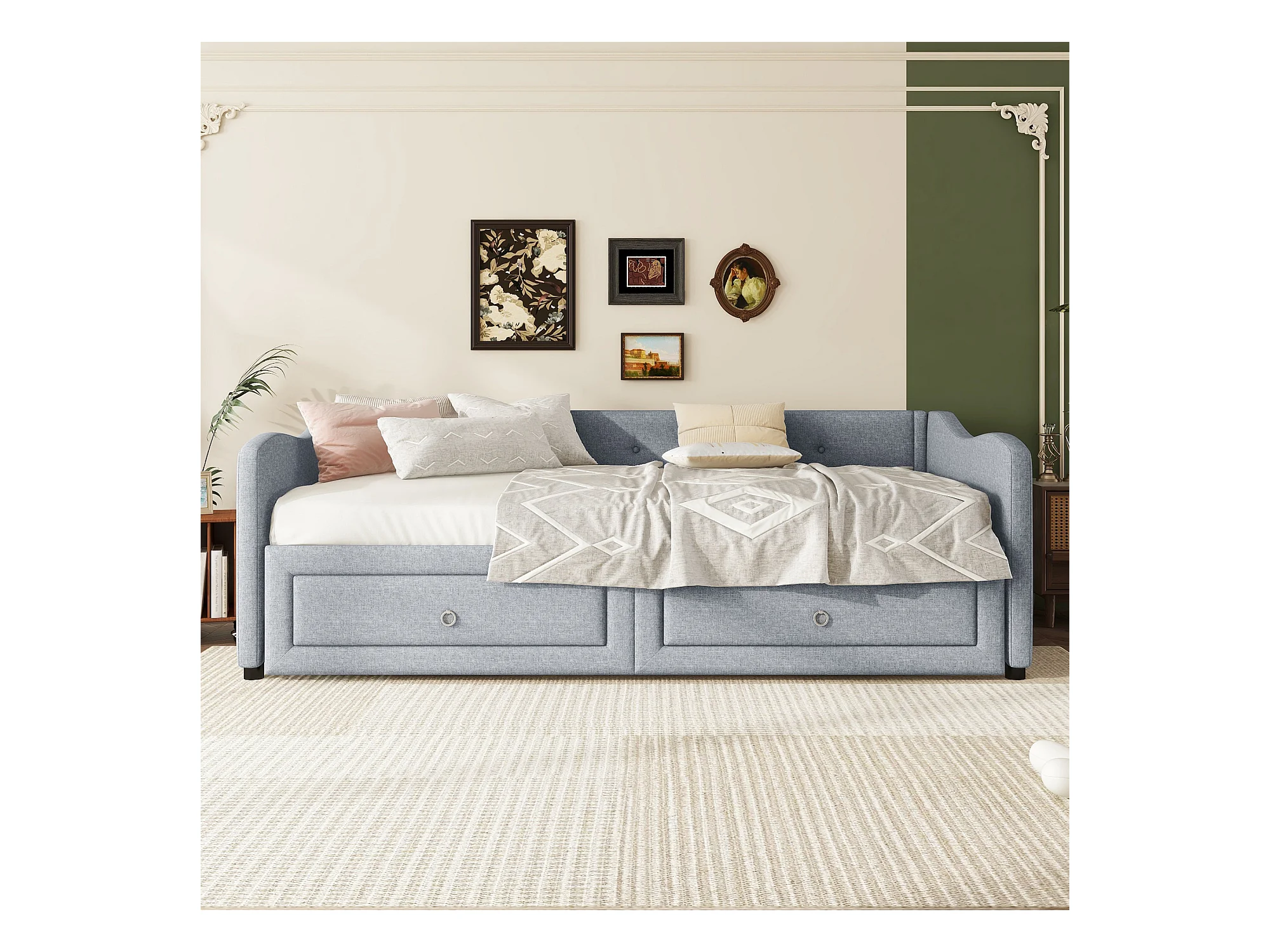 Sofá cama de 90 x 200 cm, lino gris, cama nido con dos cajones y somier de láminas, sin colchón