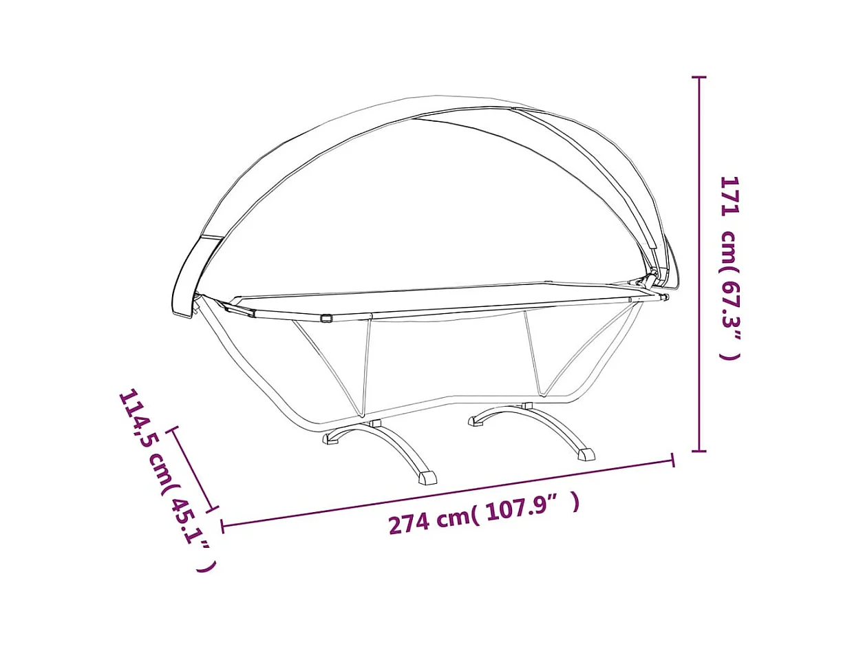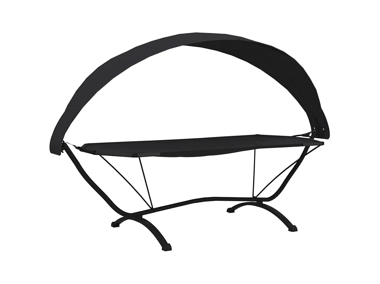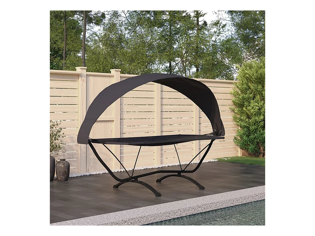Sofá cama de exterior con dosel de acero negro y tela Oxford