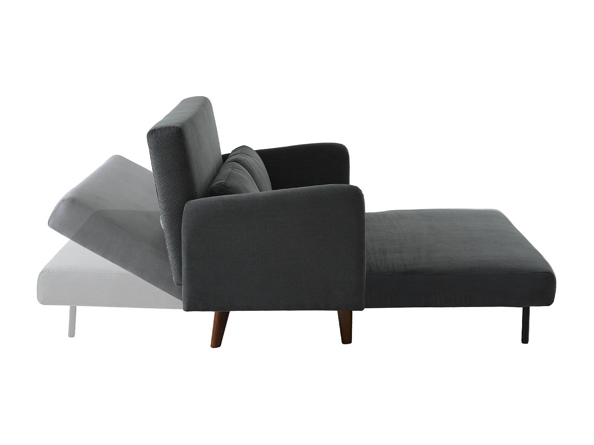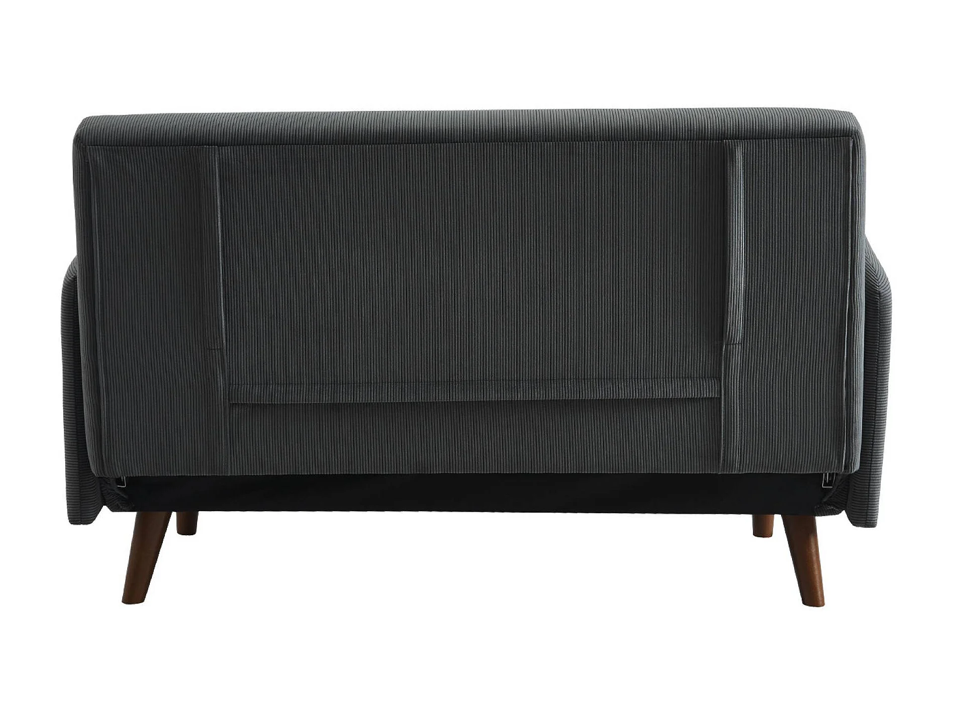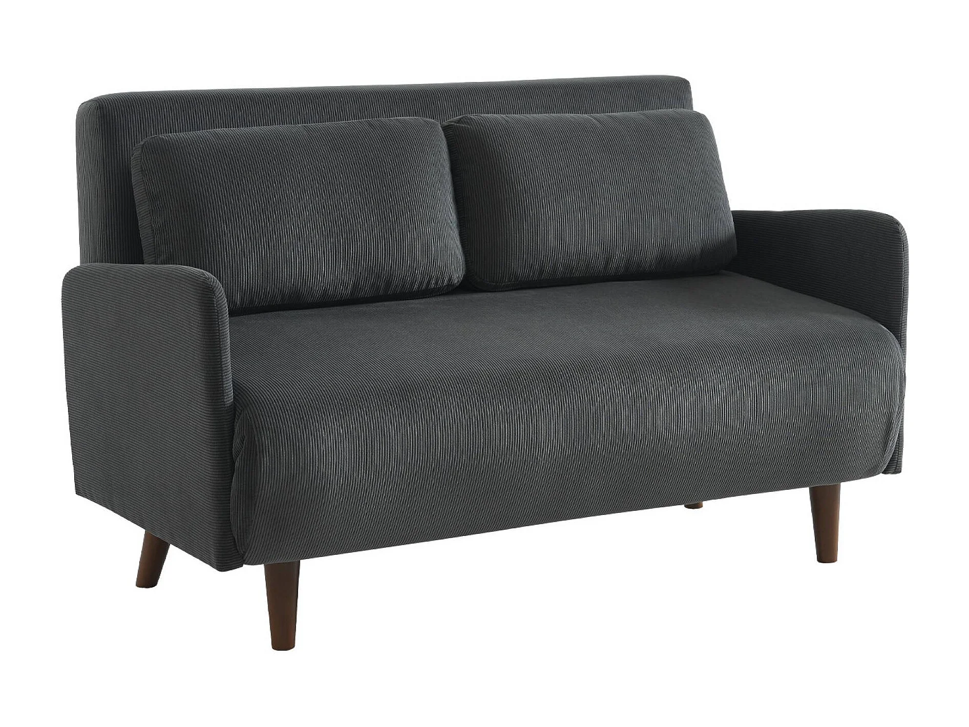 Sofá cama de pana de 2 plazas con patas de madera gris oscuro