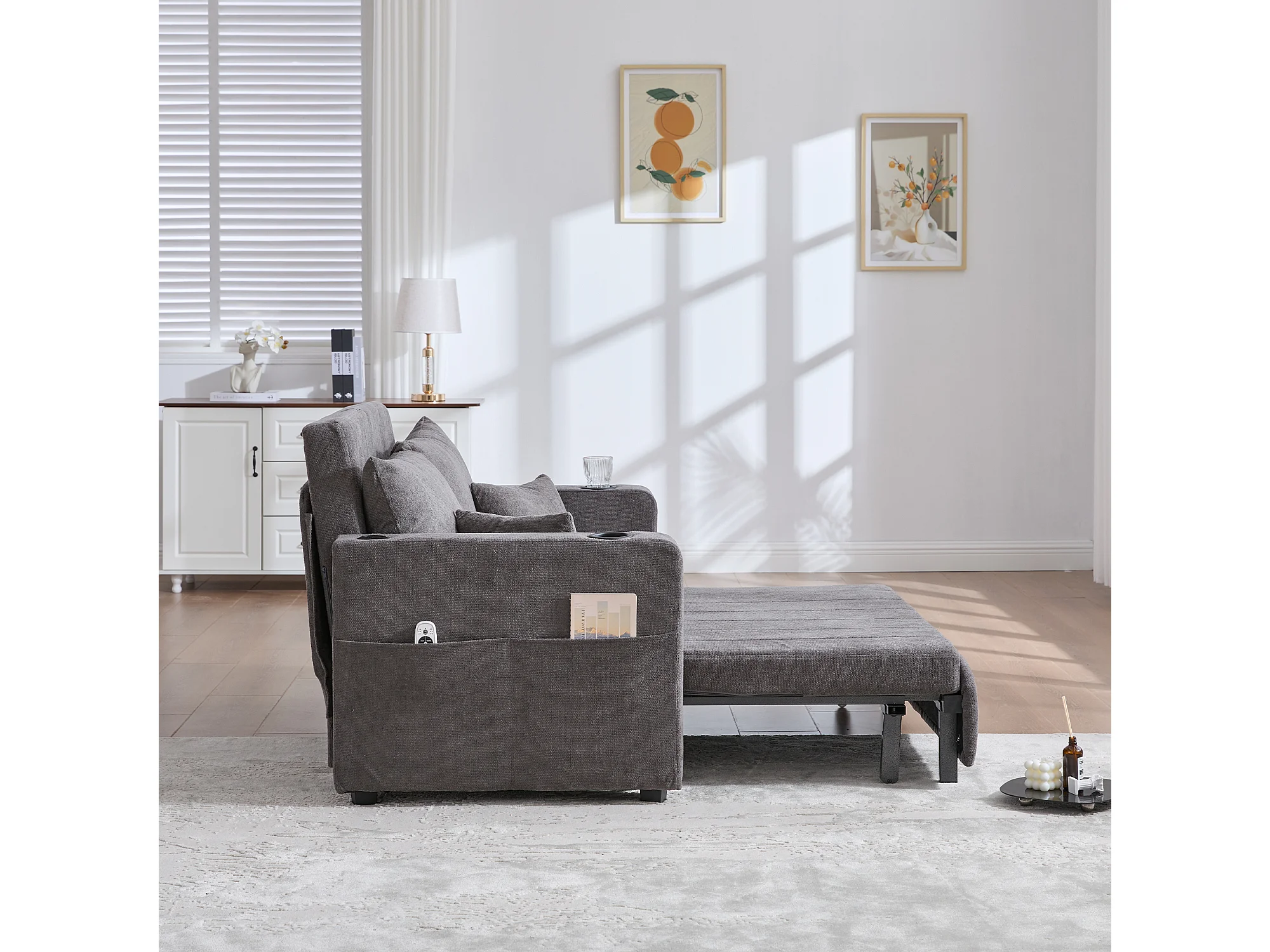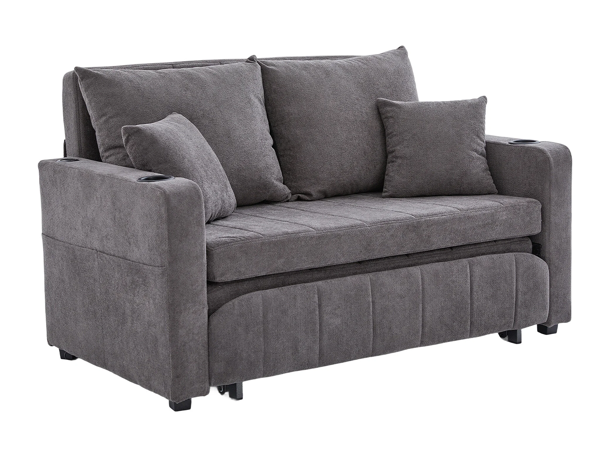 Sofá cama de tela de 2 plazas con portavasos con almacenamiento USB para sala de estar y dormitorio en gris