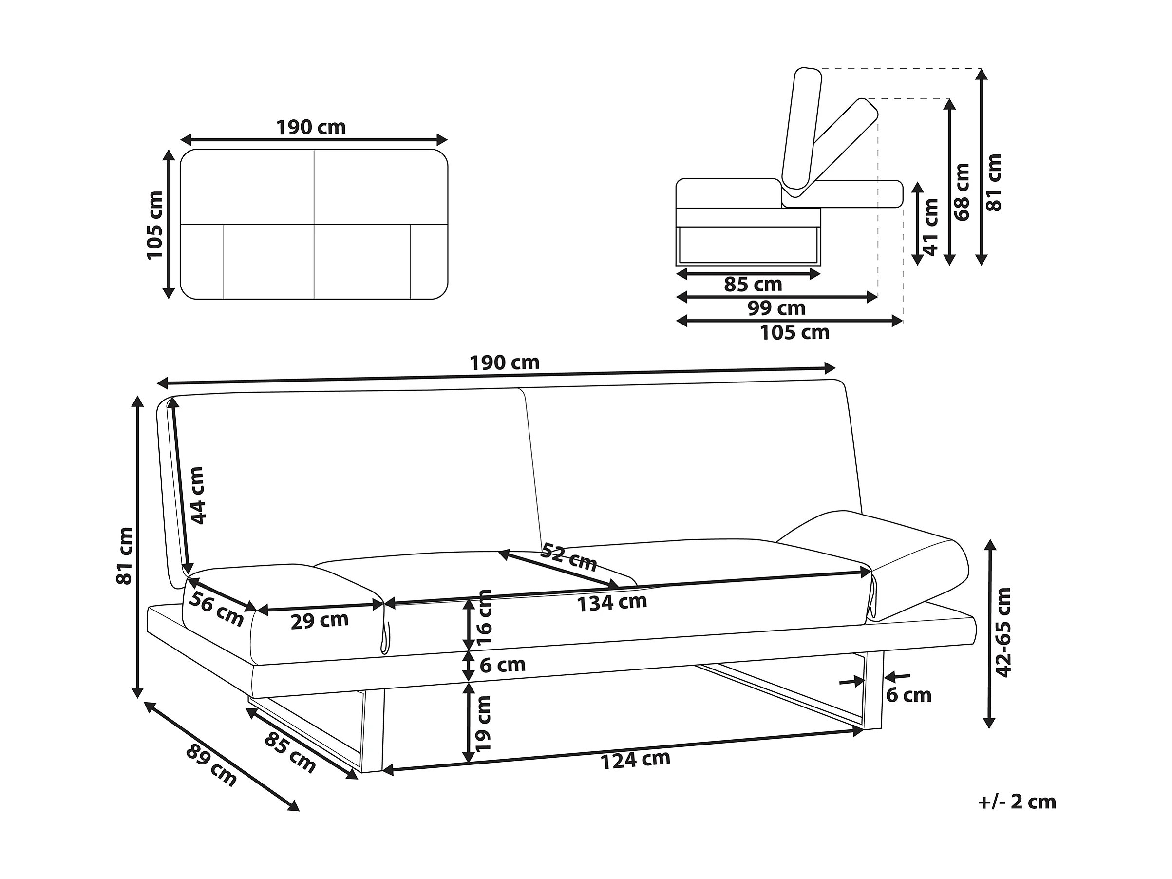 Sofá cama YORK Terciopelo Azul marino 2 plazas