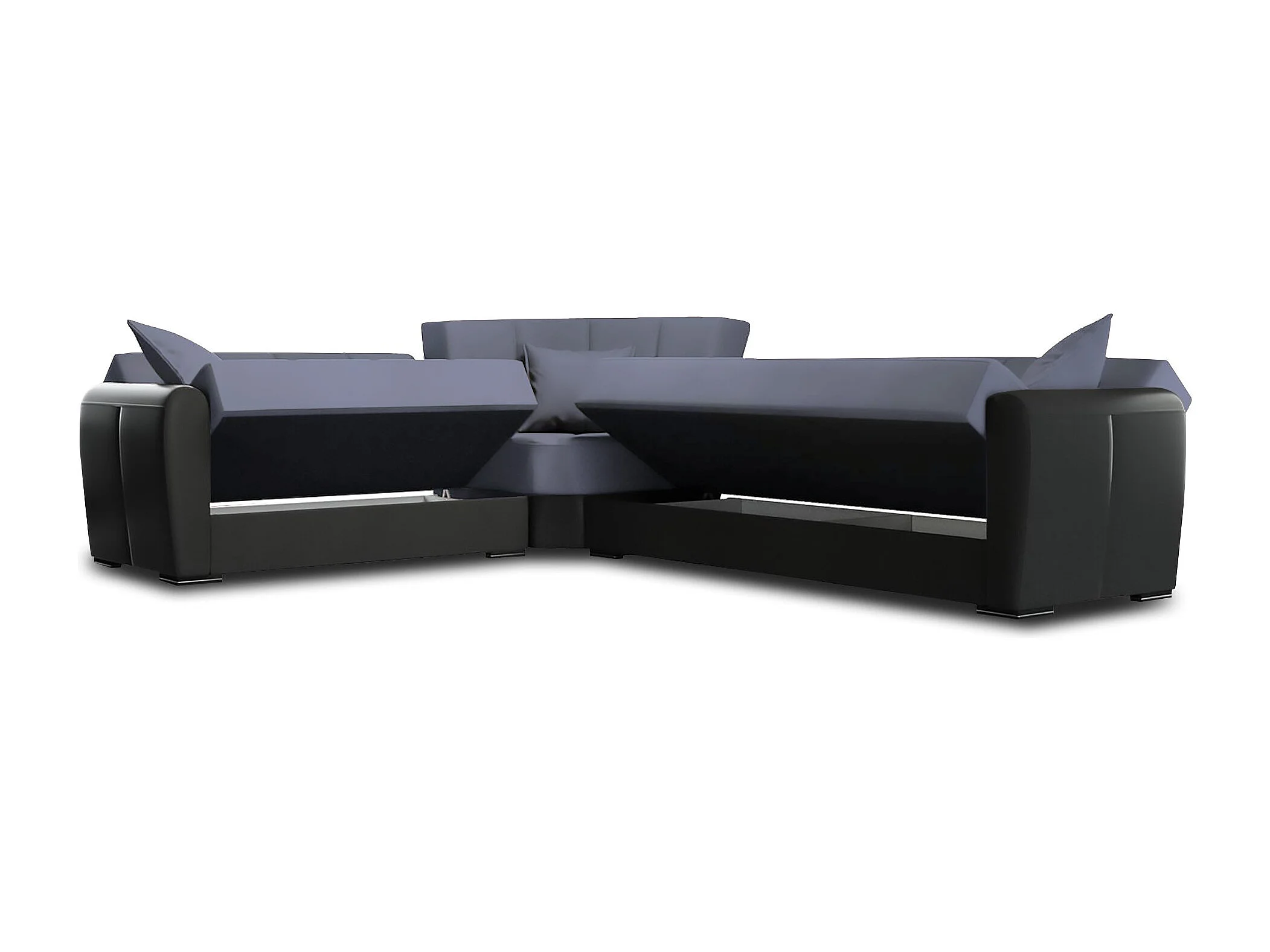 Sofá cama Dgytkjæ, Sofá cama rinconera contenedor en ecopiel y tejido, Sofá de salón con apertura clic-clac y península reversible, 305x238h91 cm, Negro y Gris