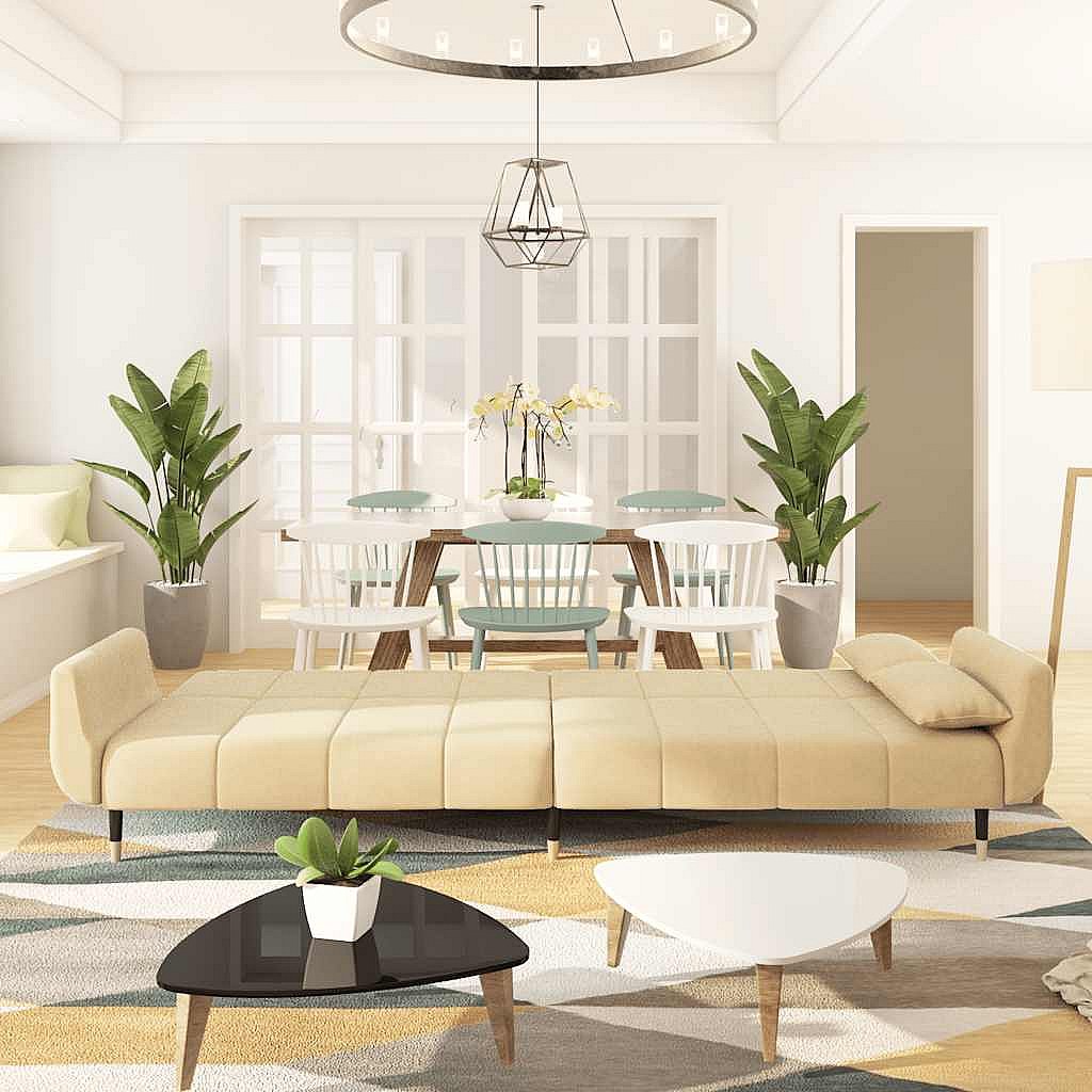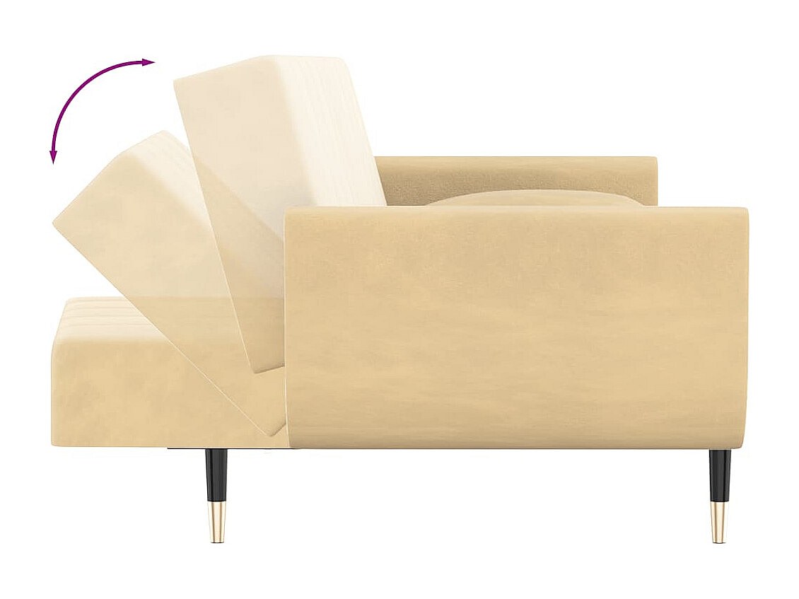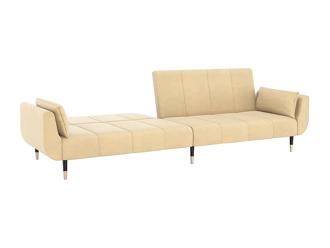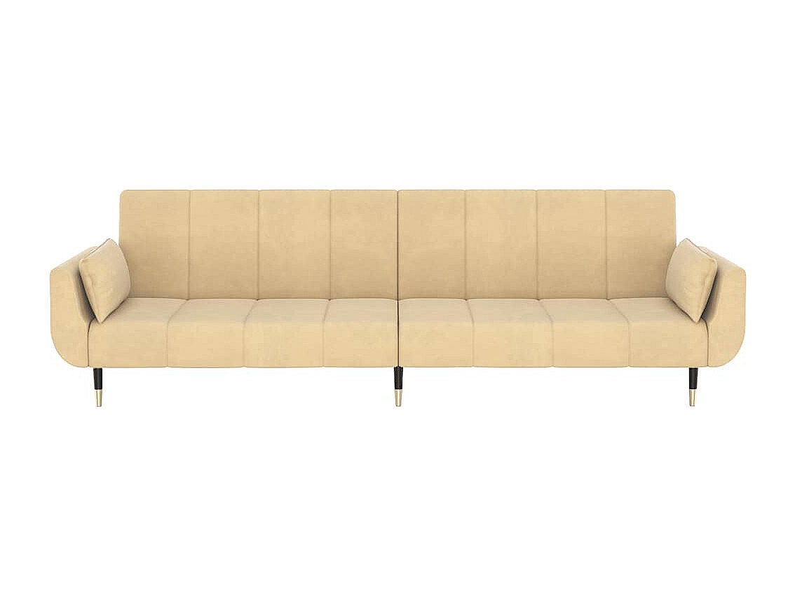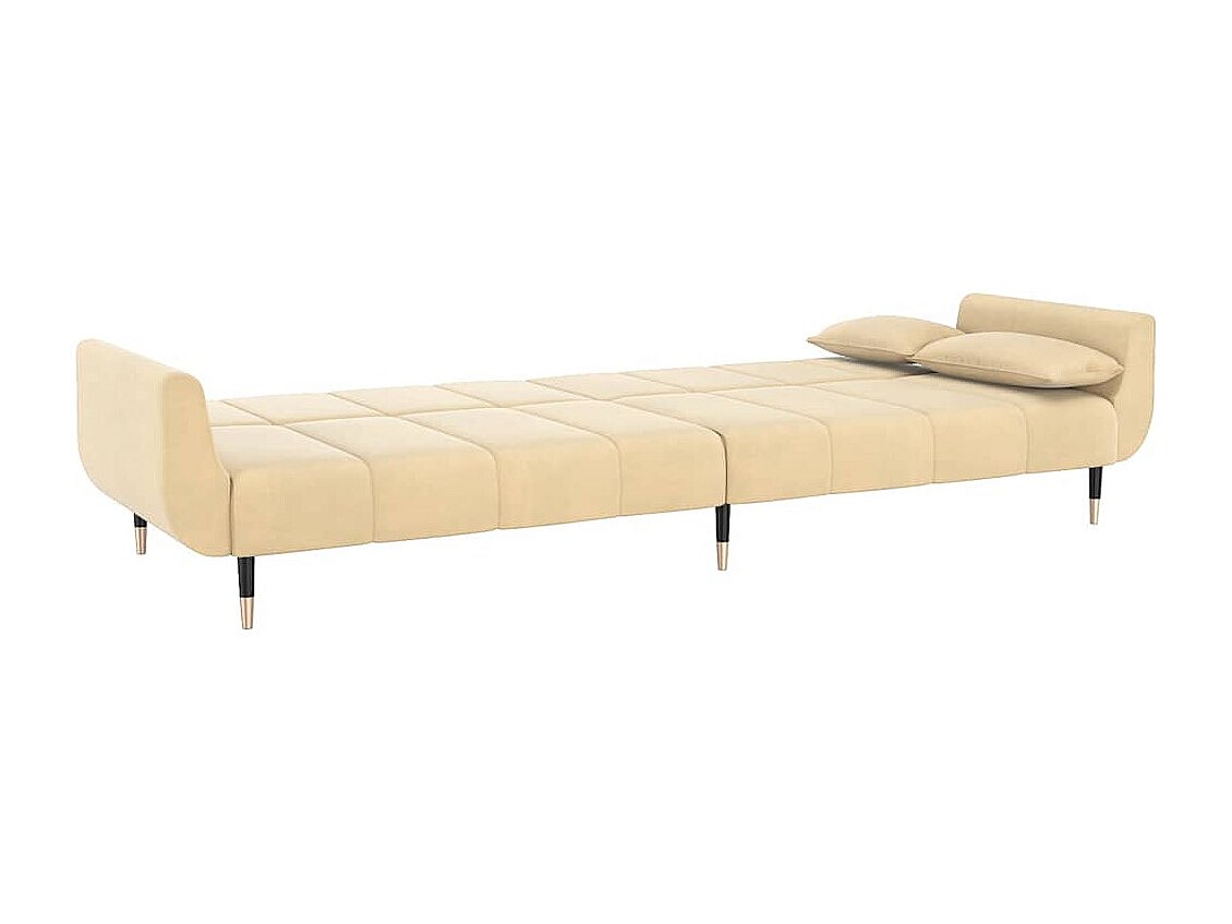 Sofá cama doble con dos almohadas de terciopelo color crema