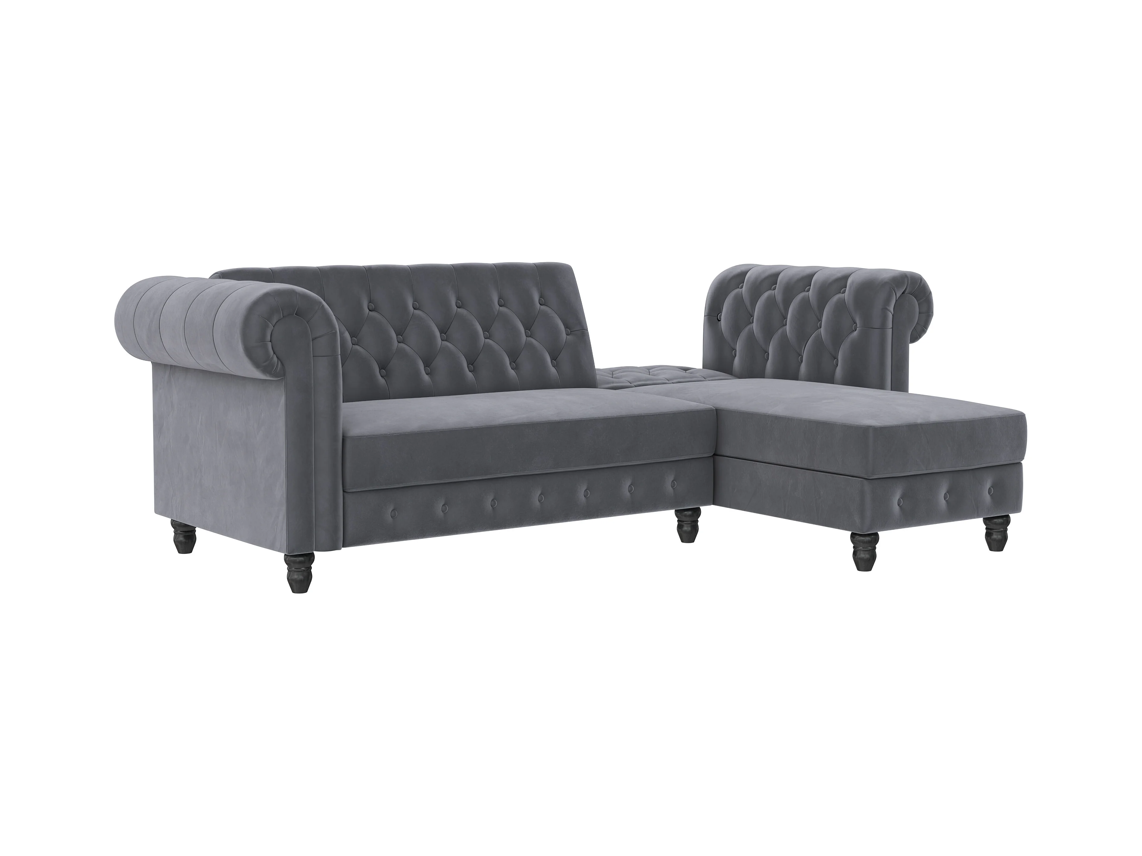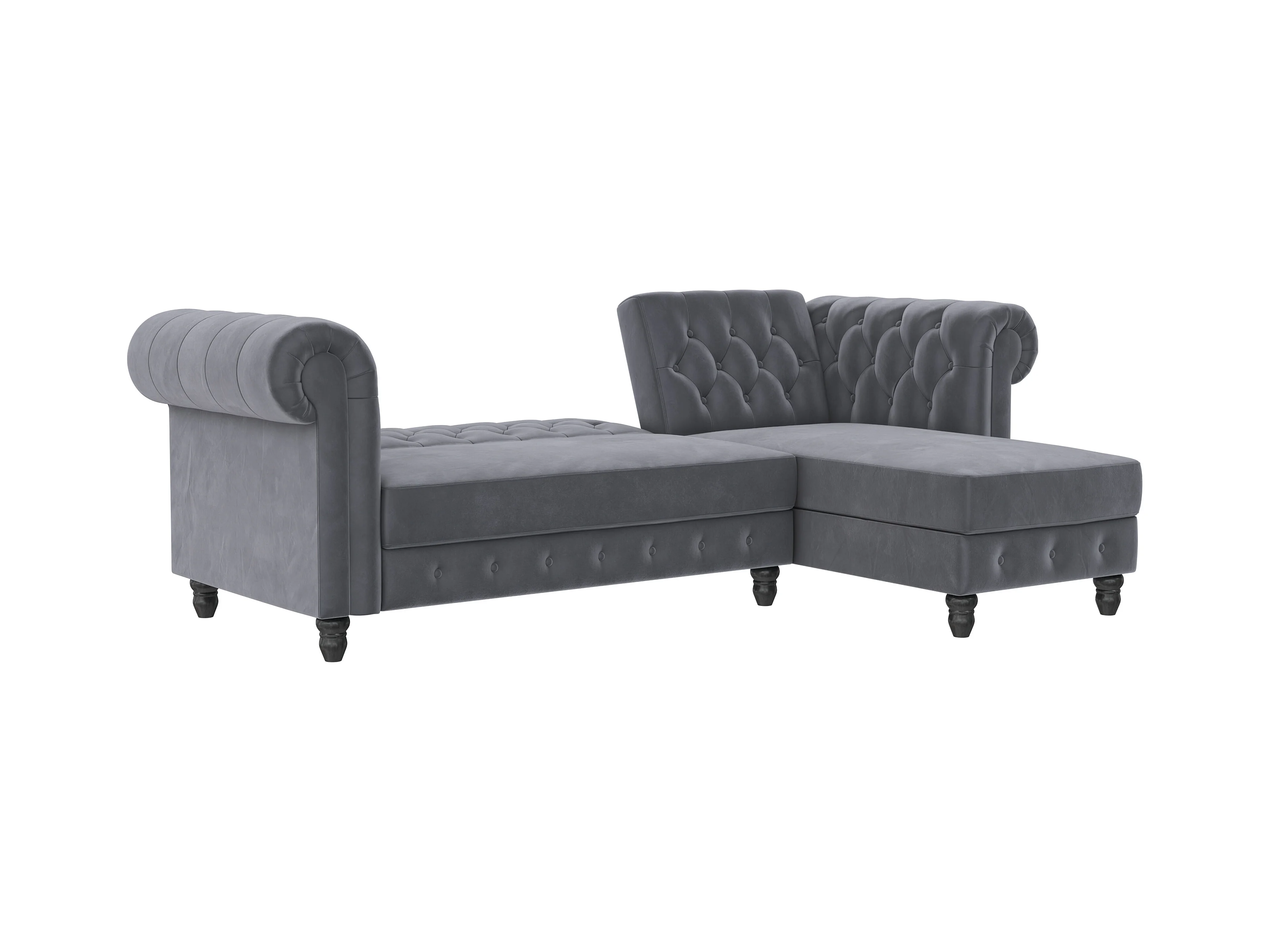 Sofá Cama 4 Plazas con Chaise Lounge en Terciopelo Gris Claro