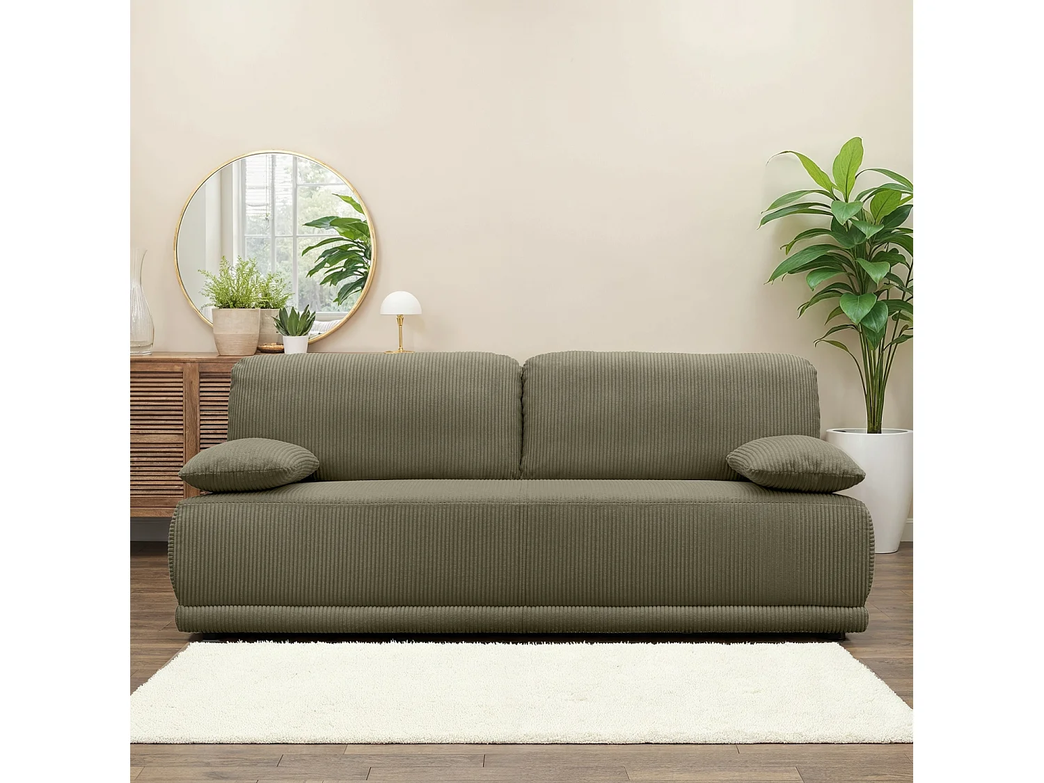 Sofá cama de pana de 3 plazas kaki oscuro