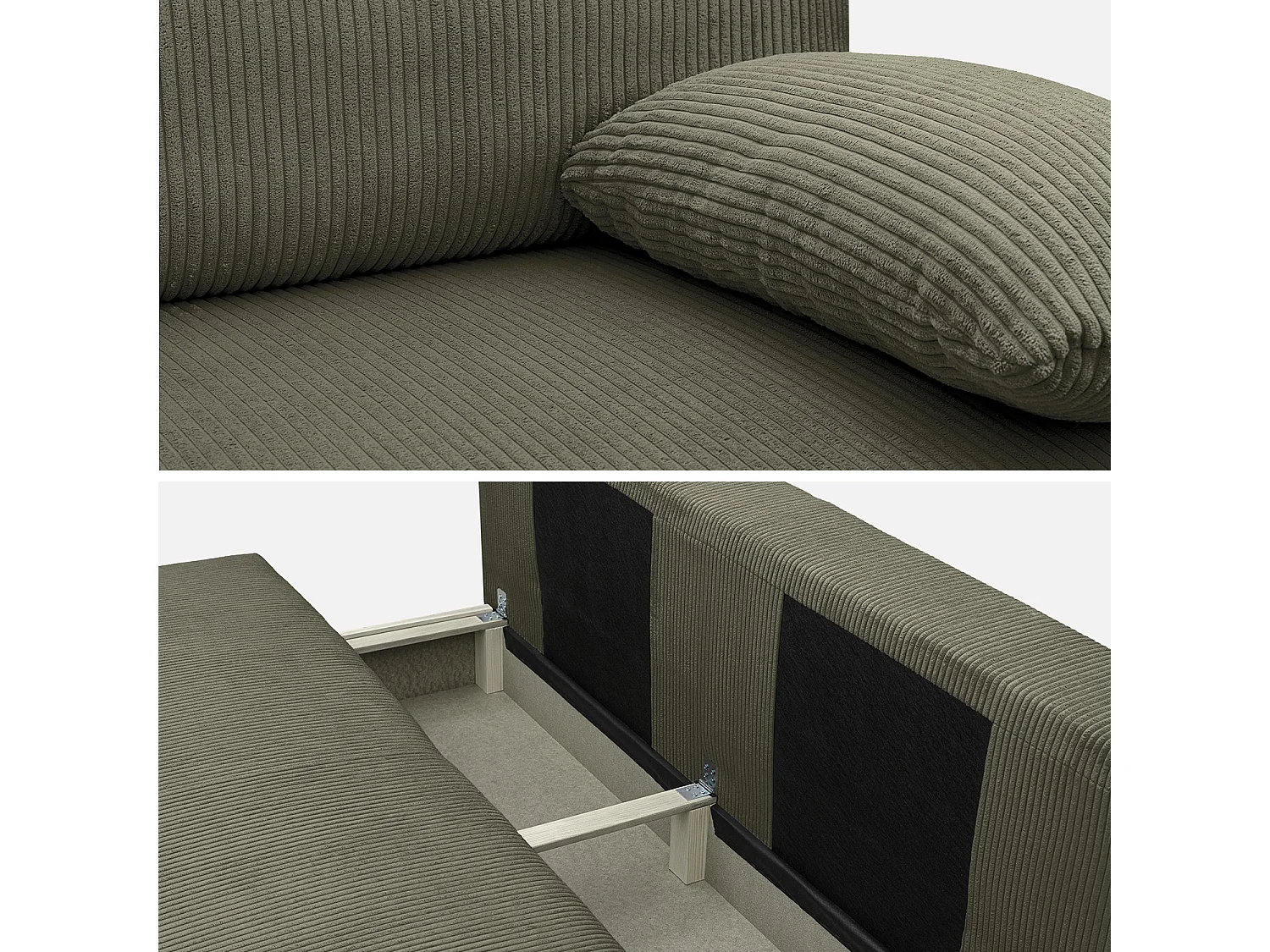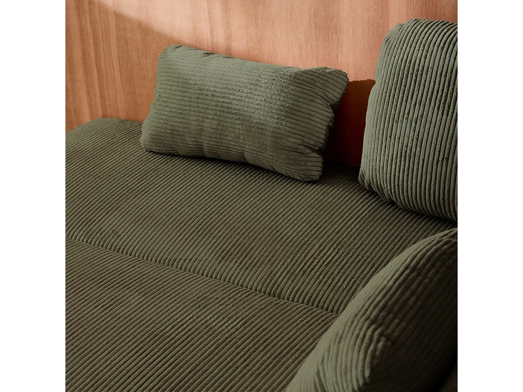 Sofá cama en pana fina con baúl de almacenamiento, 3 plazas verde kaki