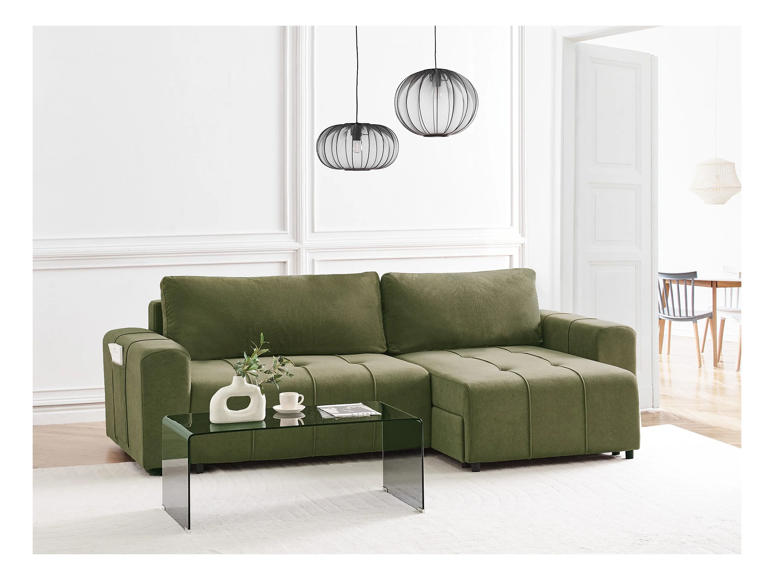 Sofá cama esquinero INNVIK Tela Verde 3 plazas Derecha