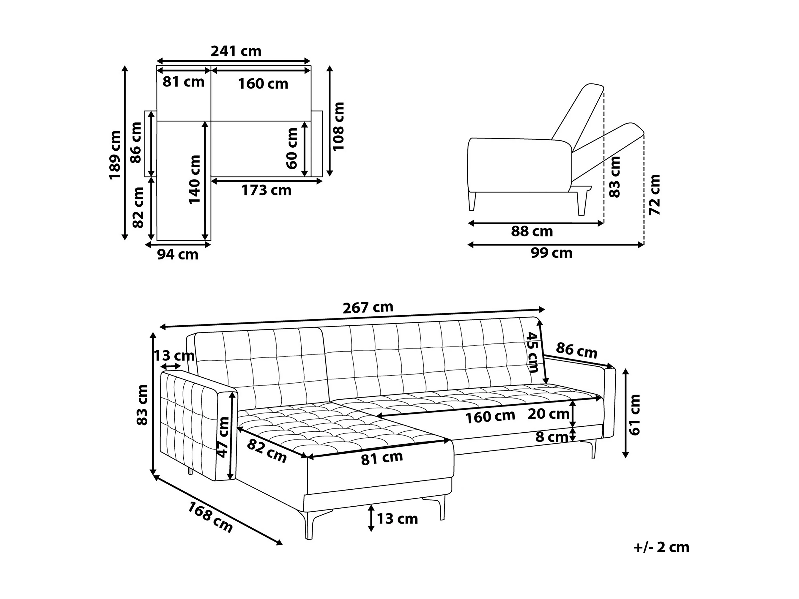Sofá cama esquinero modular ABERDEEN Tela Gris oscuro 4 plazas Derecha