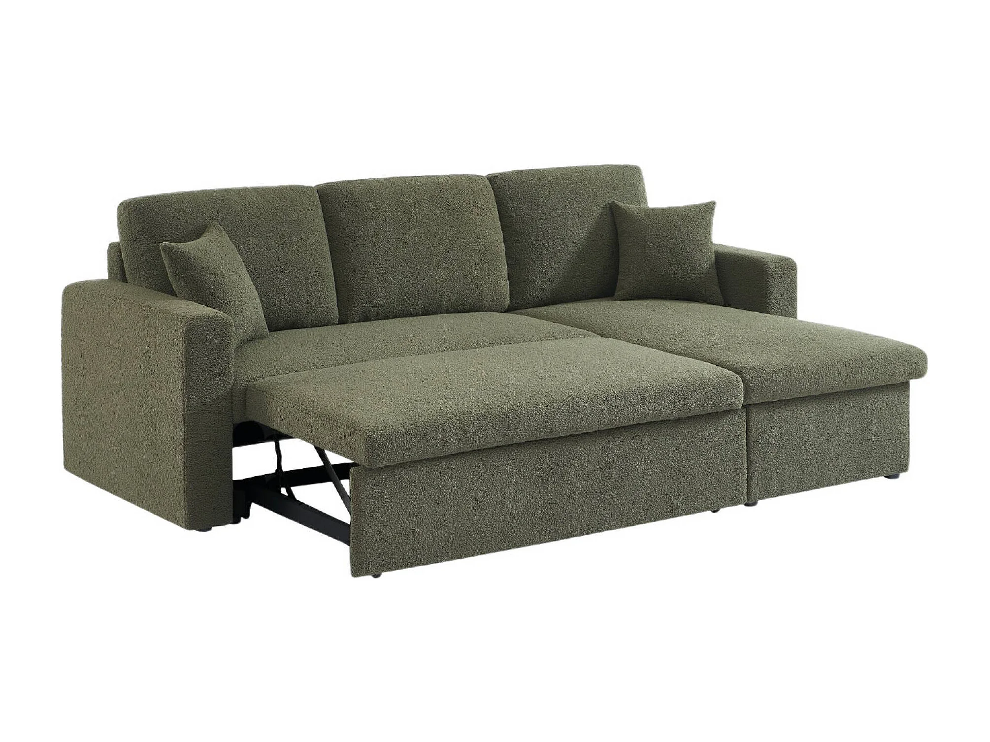 Sofá cama esquinero de borreguito, 3 plazas verde kaki