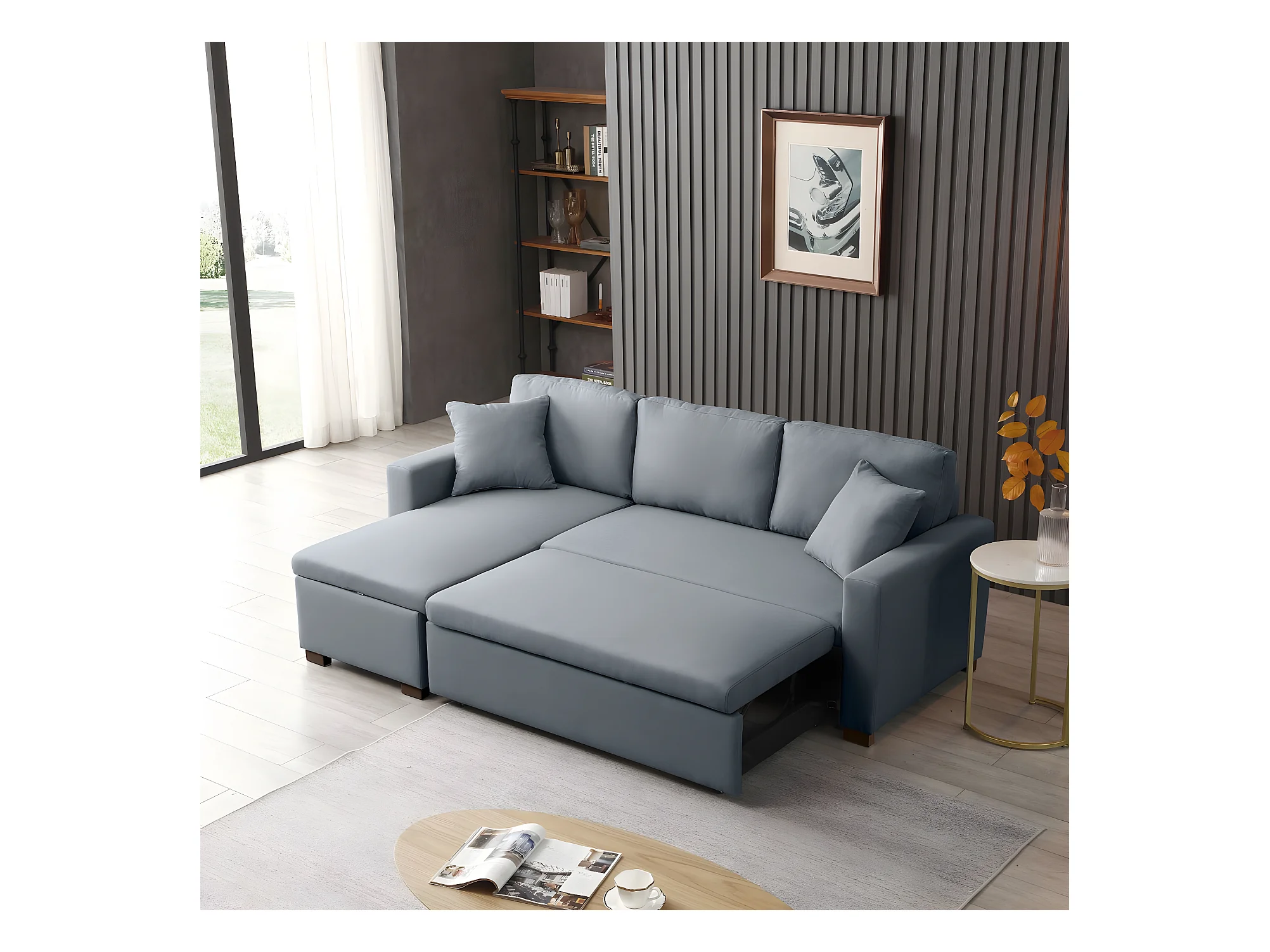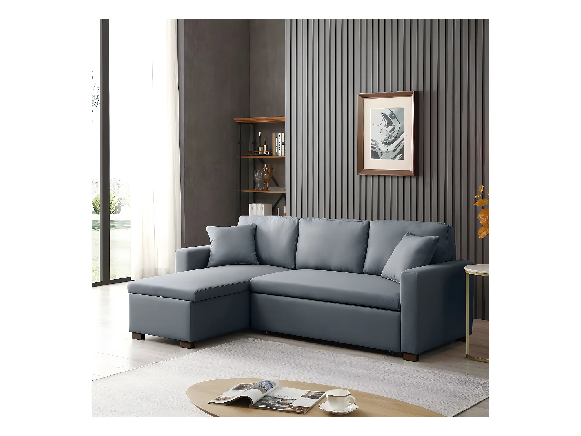 Sofá Cama Esquinero De 3 Plazas Chaise Loung 1970X1160X470 Gris