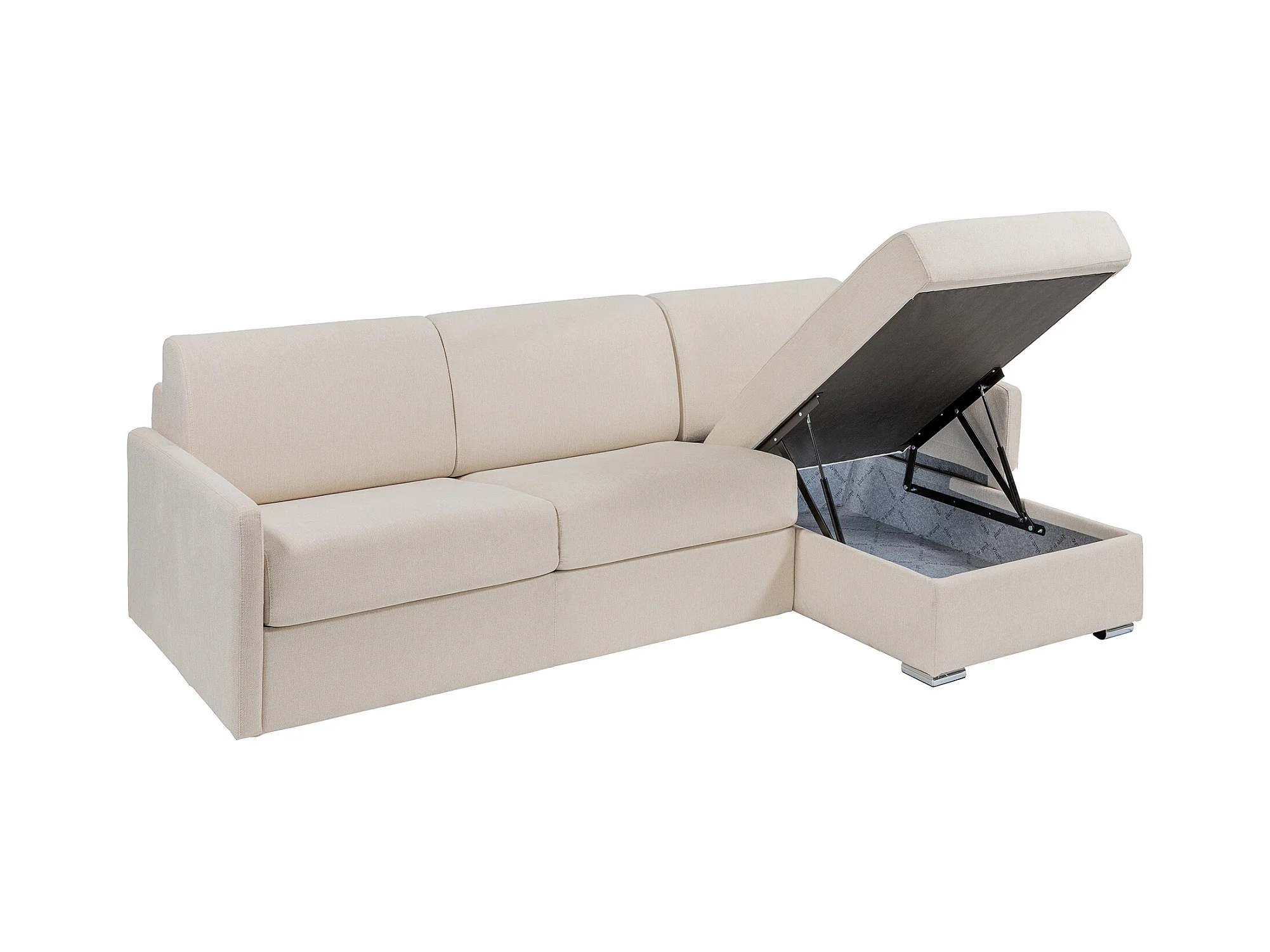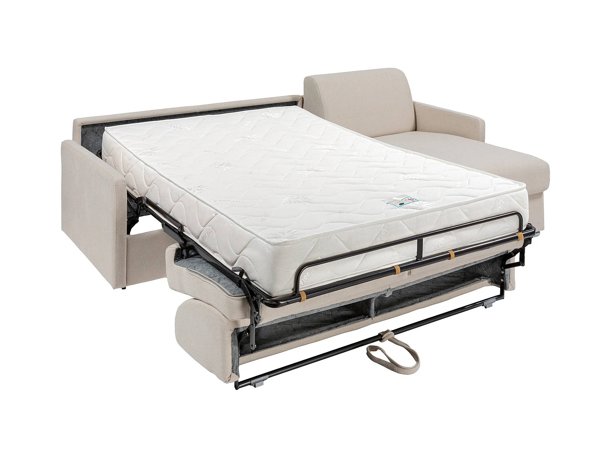 Sofá cama rinconera, de estilo italiano y reversible de tela beige - Cama de 140 cm con lamas anchas - Colchón con memoria de forma de 22 cm - CALIFE