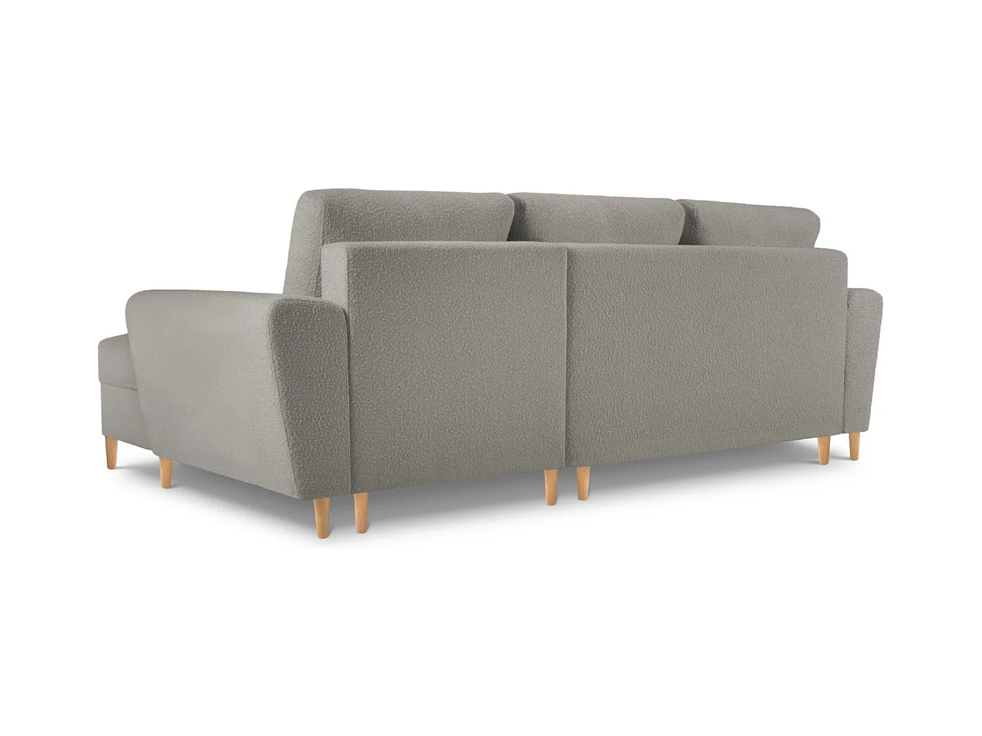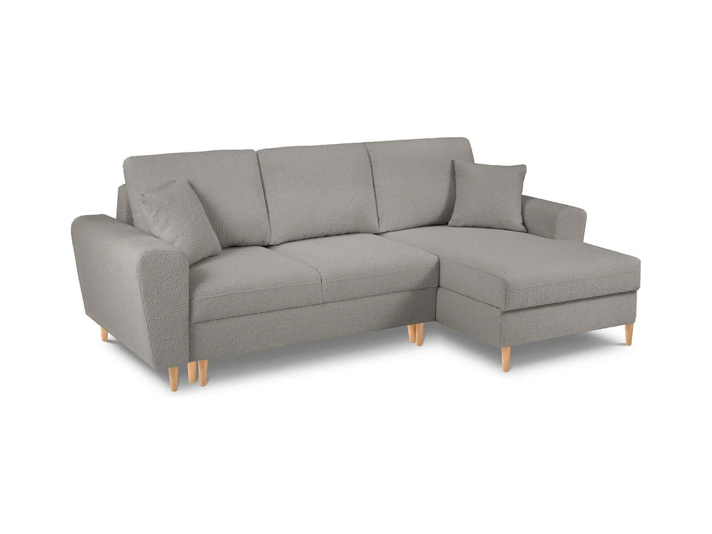 Cosmopolitan Design - Sofá cama esquinero derecho con baúl de almacenaje "Kyoto" 4 plazas de tejido bouclé gris - 241x145x88cm