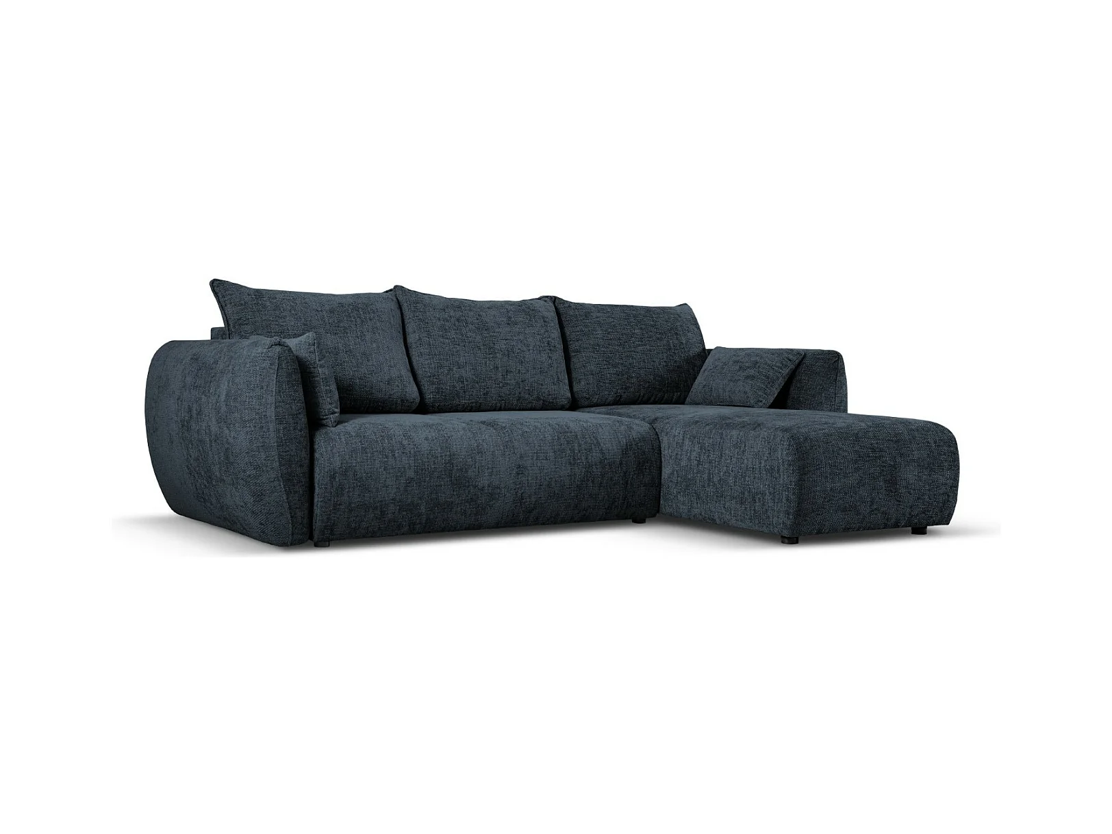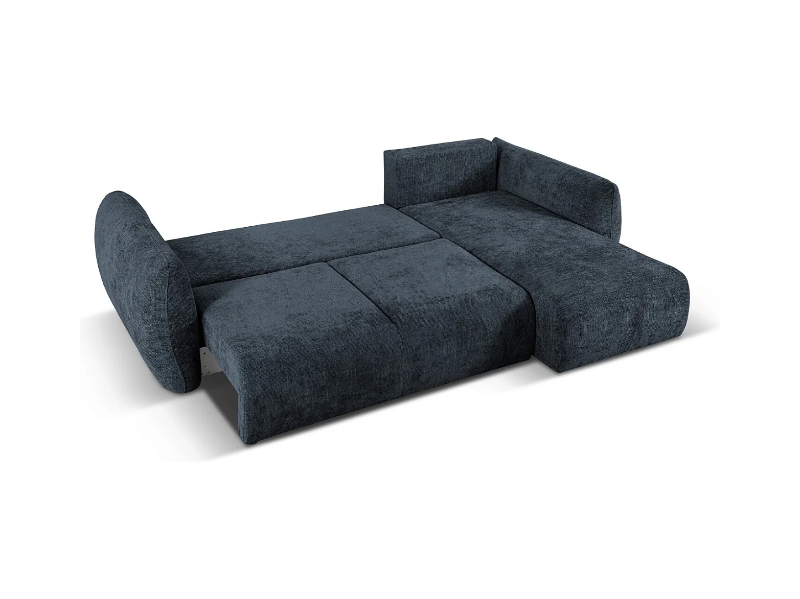 Cosmopolitan Design - Sofá cama esquinero derecho con baúl de almacenaje "Matera" 4 plazas de tejido chenilla azul regio - 253x173x86cm
