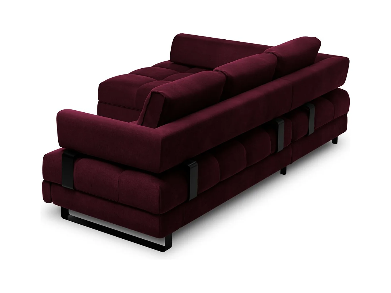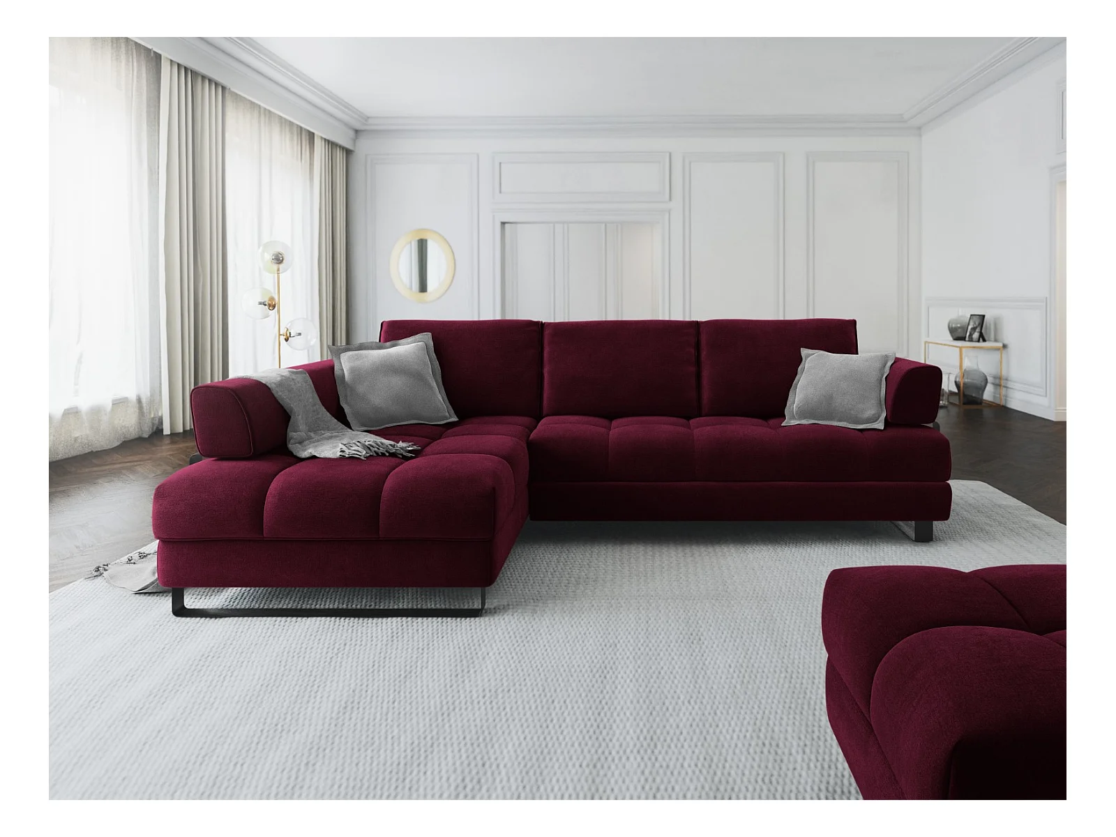 Cosmopolitan Design - Sofá cama esquinero izquierdo con baúl de almacenaje "Clinton" 5 plazas de terciopelo rojo oscuro - 272x173x89cm