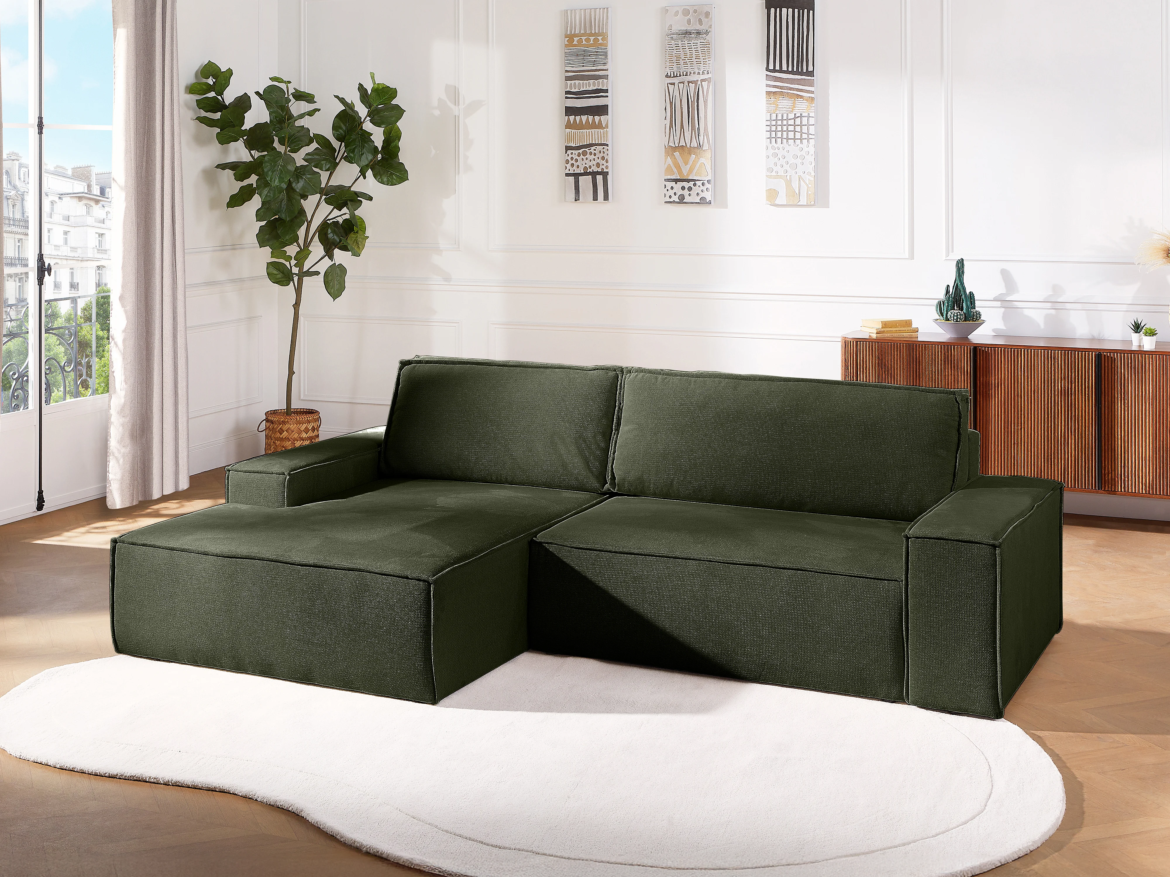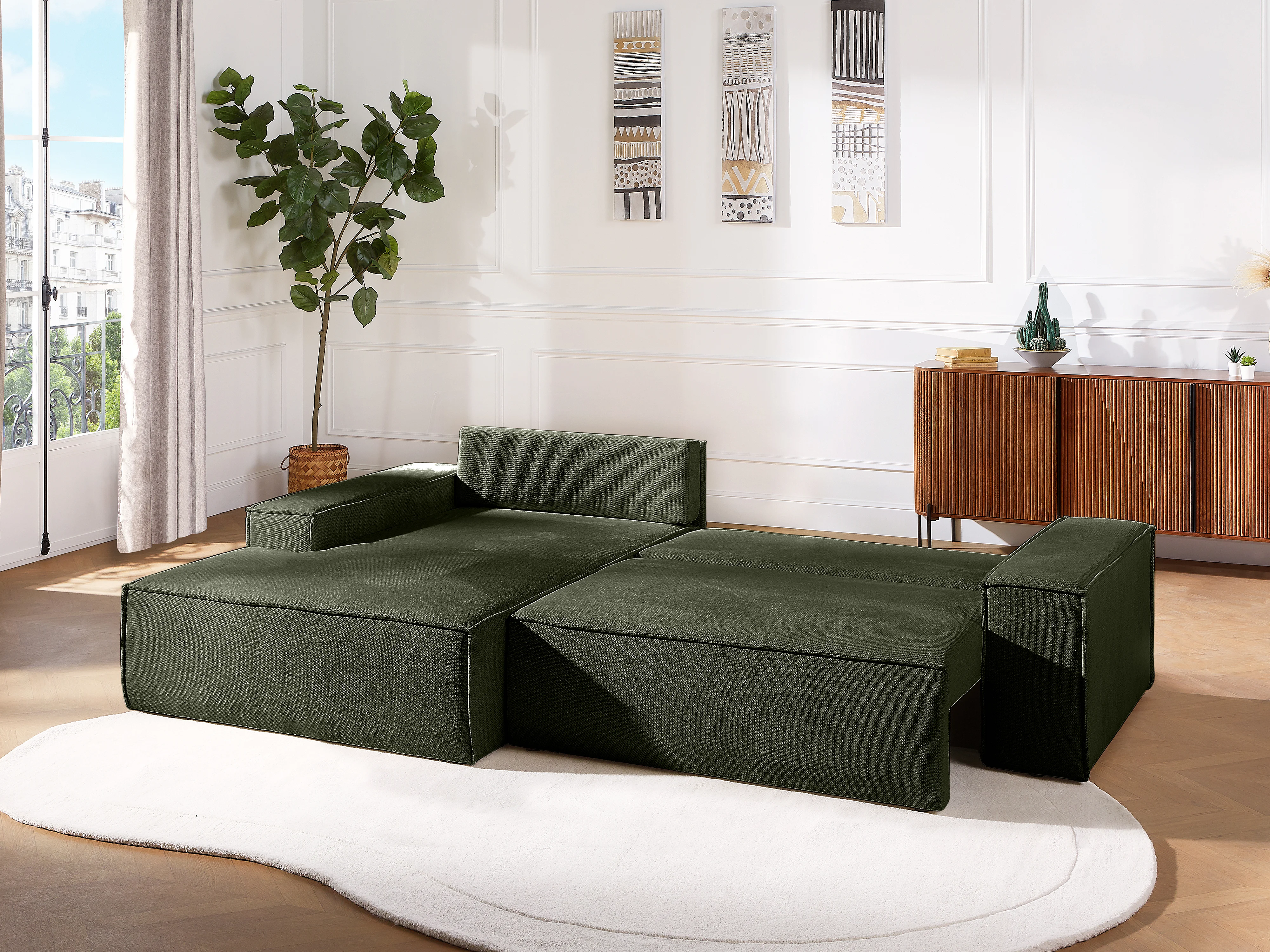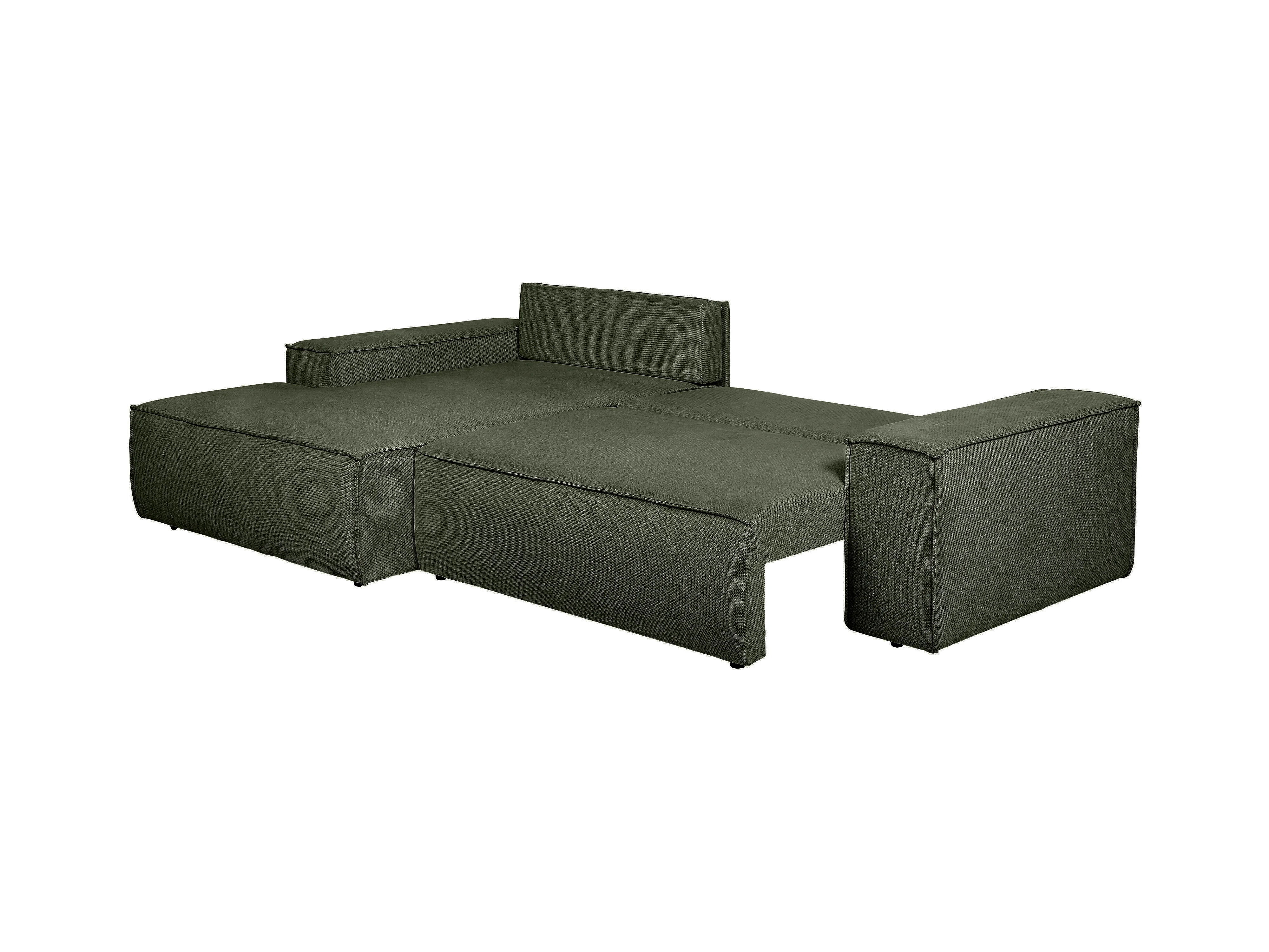 Sofá cama rinconera izquierda de tela texturizada verde AMELIA