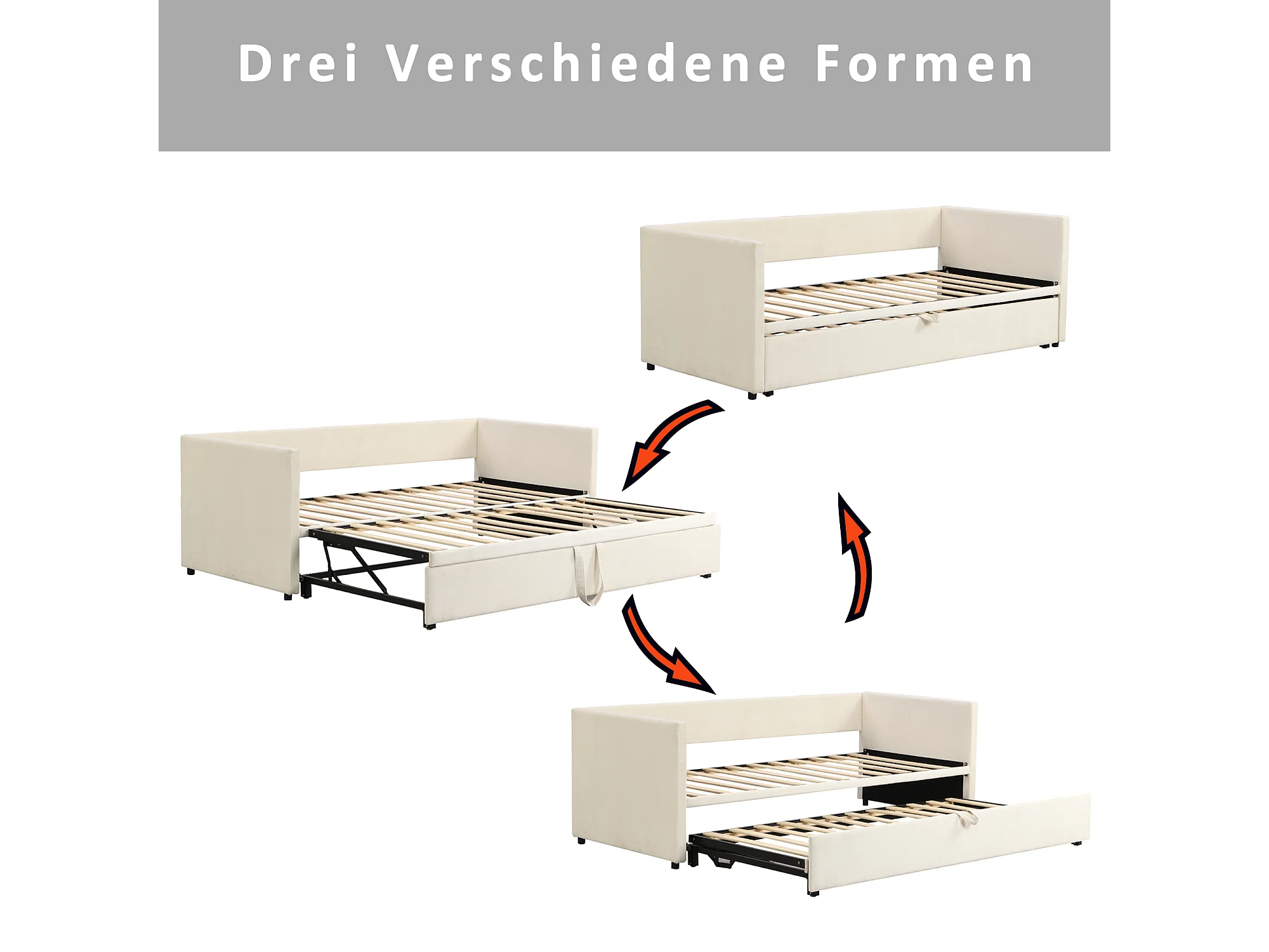 Sofá cama de 90x200 cm con cama nido extraíble y puerto USB – Práctico y cómodo sofá cama, diseño moderno, color beige