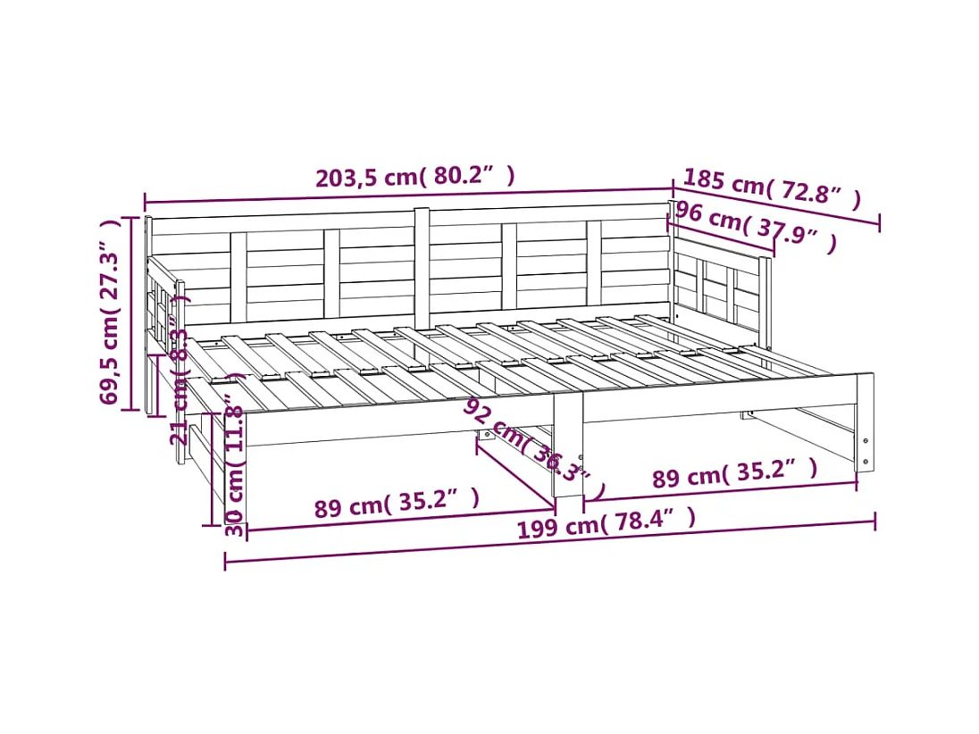 Sofá cama extraíble madera maciza de pino 2x(90x200) cm