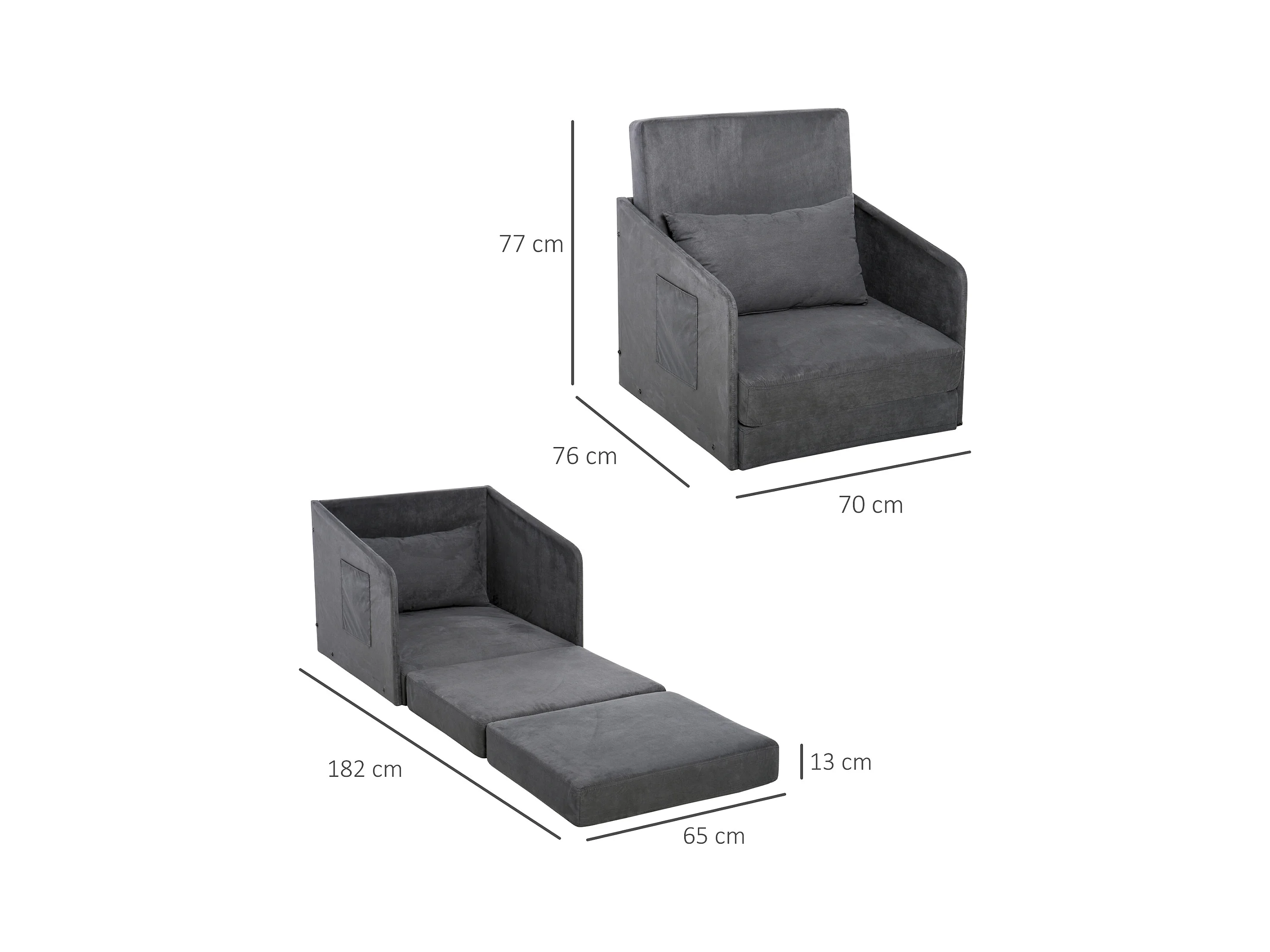 Sofá cama individual 70x76x77 cm metal gris con funda extraíble y almacenaje