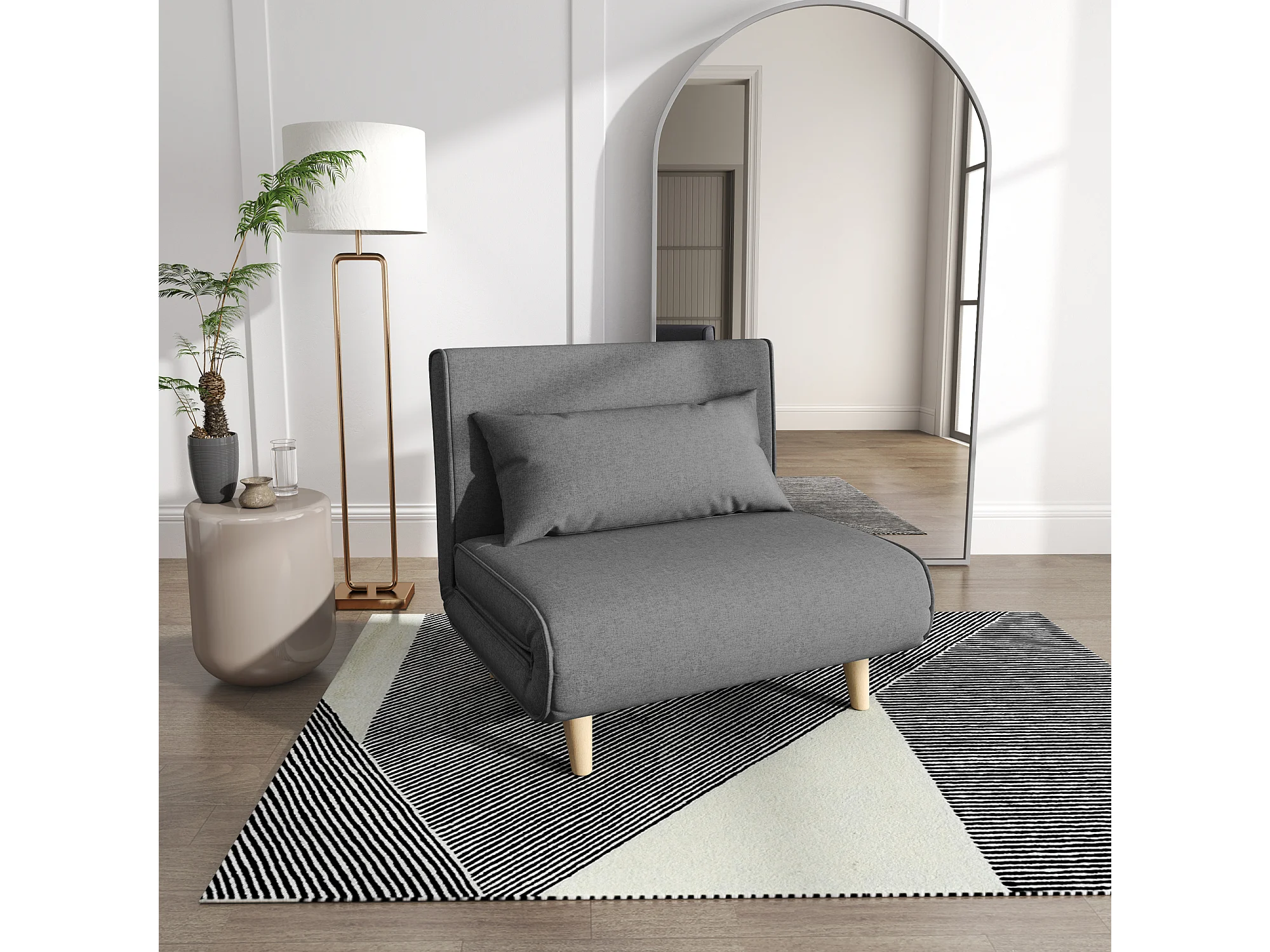 Sofá cama individual plegable pequeño, gris, con respaldo regulable, diseño escandinavo, dimensiones 95 x 95 x 80 cm