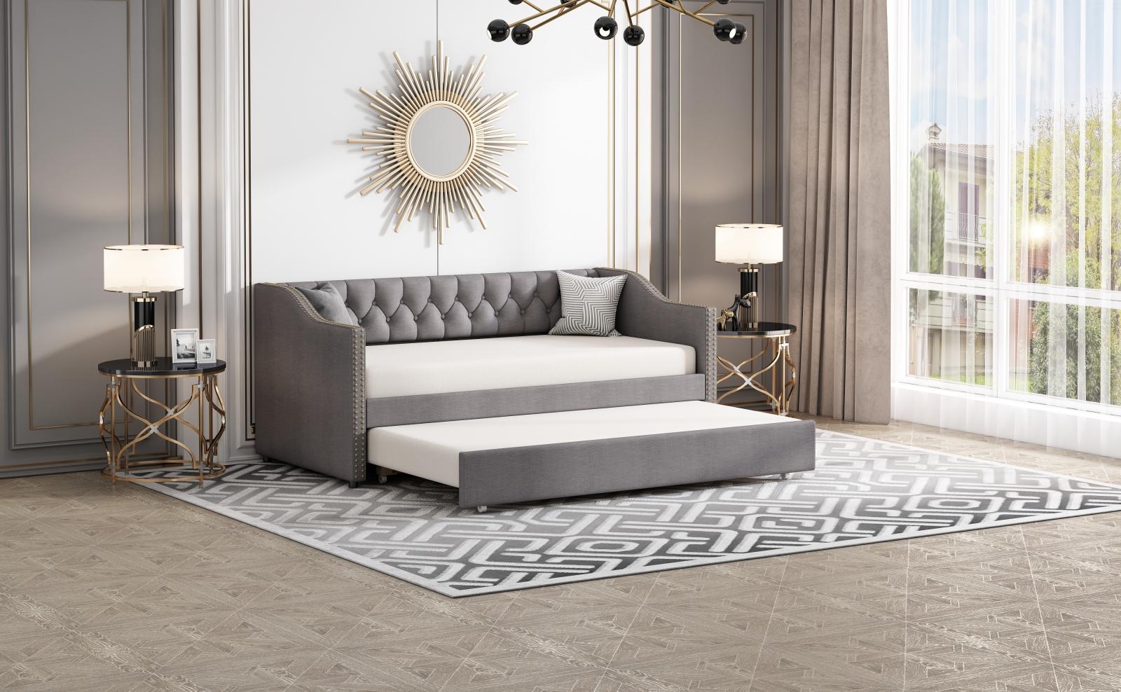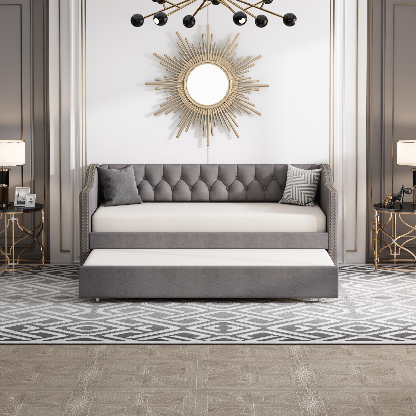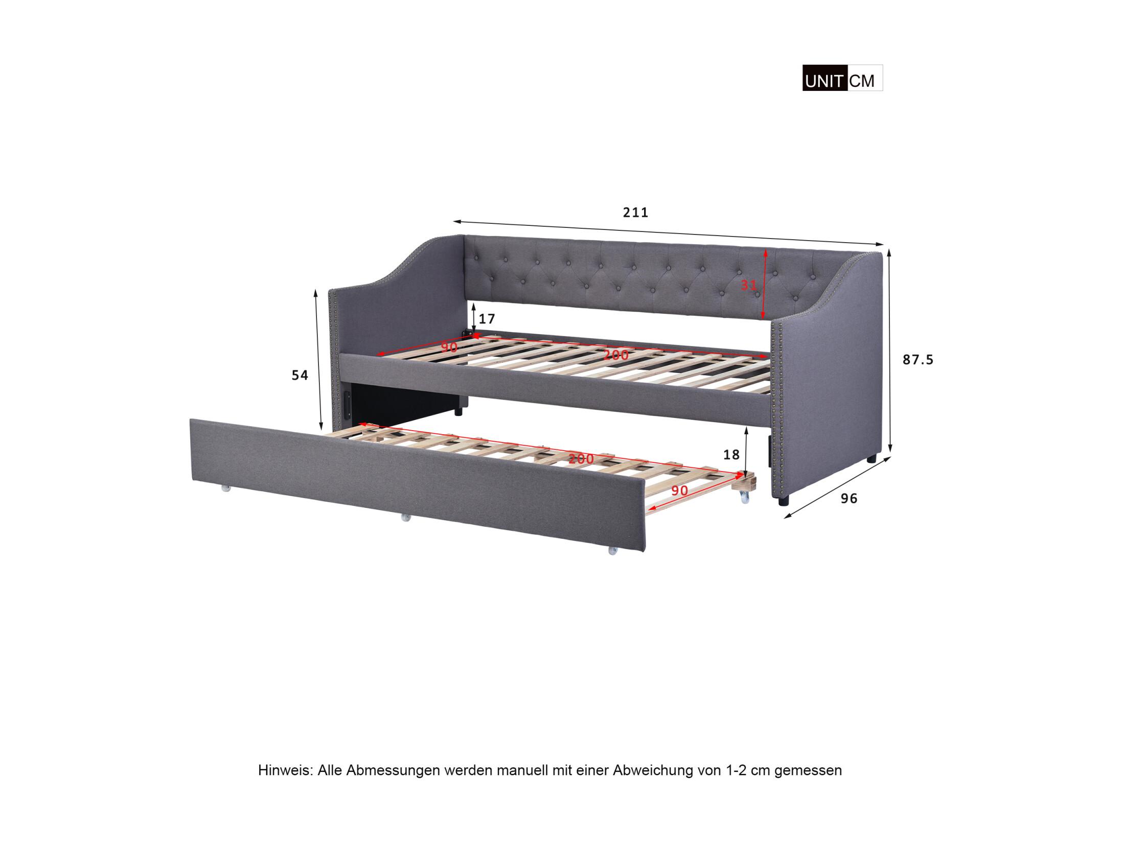 Sofá cama infantil 90x200 cm, sofá cama extraíble, lino resistente al desgaste, beige