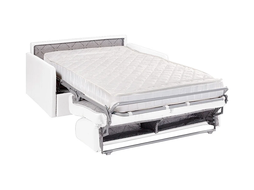 Sofá cama italiano 3 plazas piel sintética CALIFE - Blanco - Cama 140 cm - Colchón 18 cm