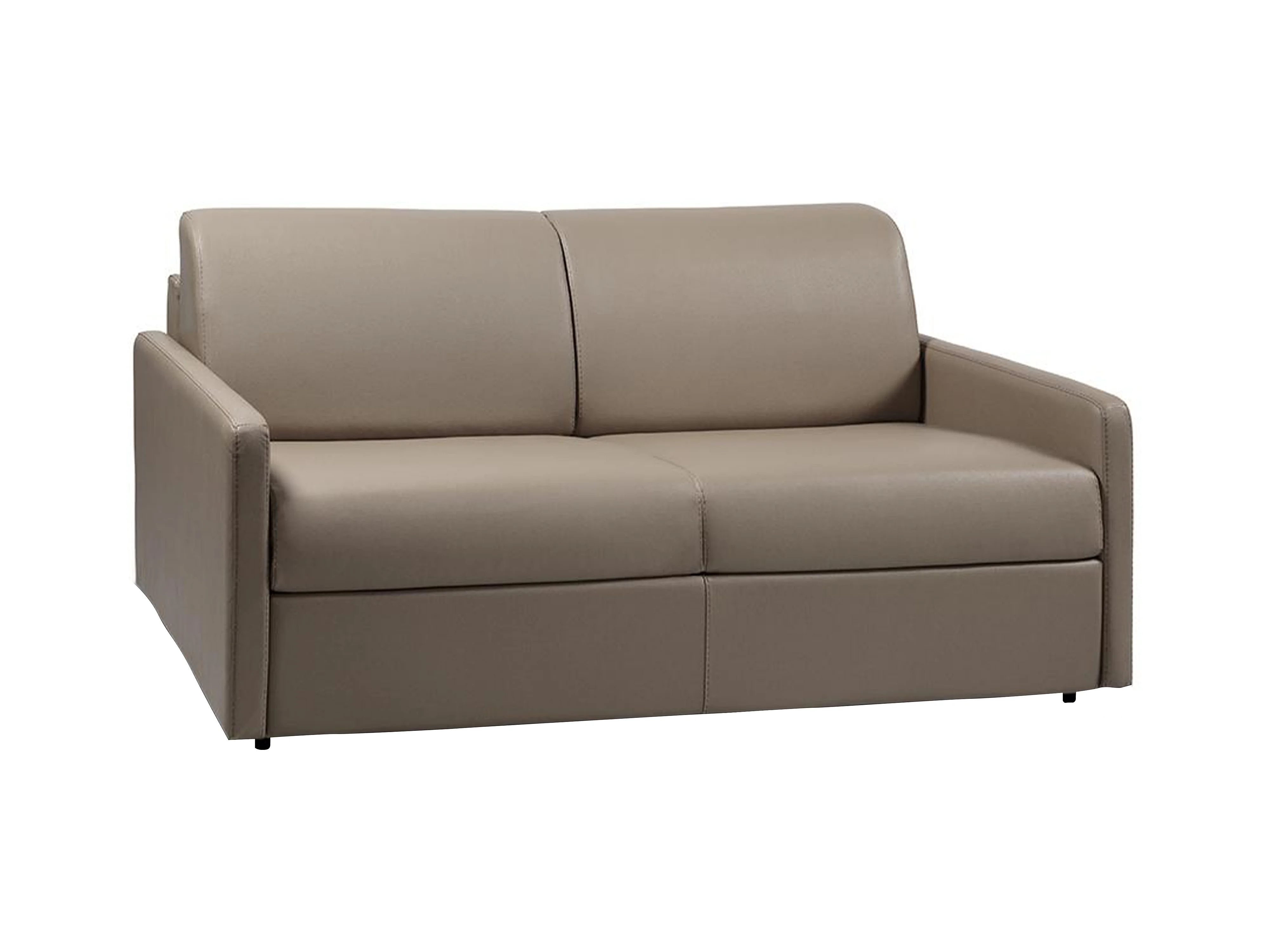 Sofá cama italiano 3 plazas piel sintética CALIFE - Topo - Cama 140 cm - Colchón con memoria de forma 22 cm