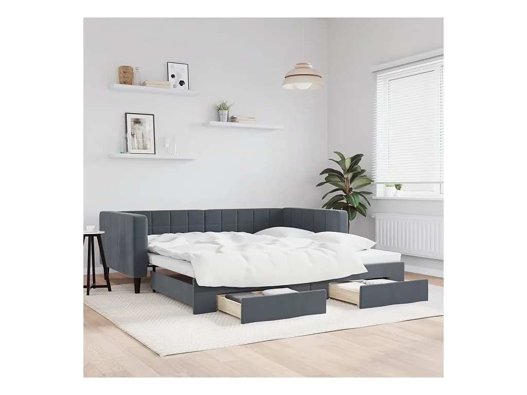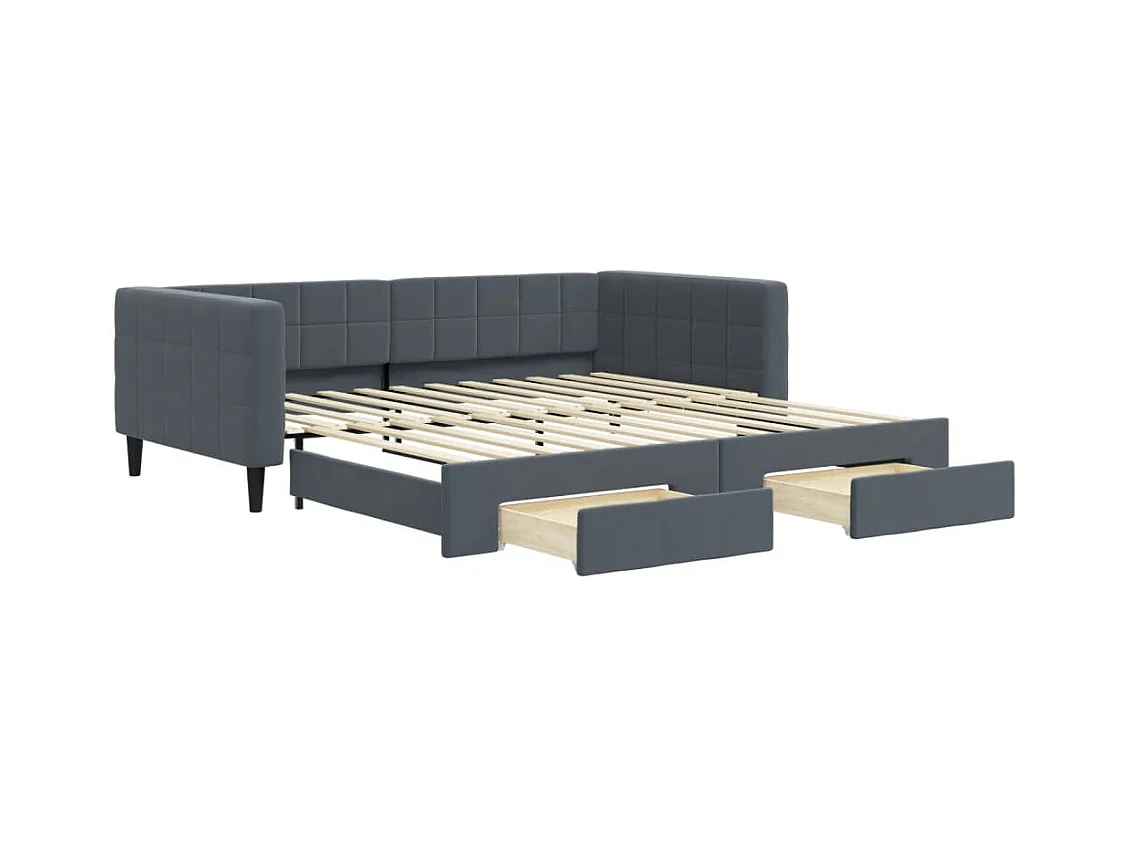 Sofá cama nido con cajones terciopelo gris oscuro 100x200 cm